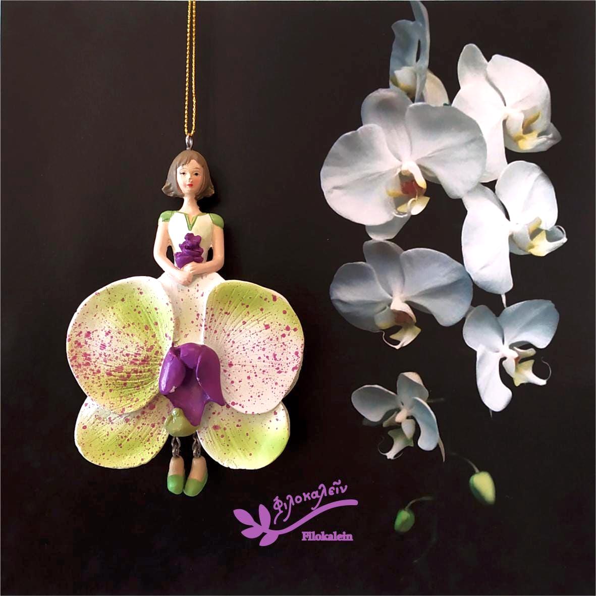 Orchid Flower Fairy Ornament, Hanging Whimsical Figurine, Boho Nursery Accent Decor