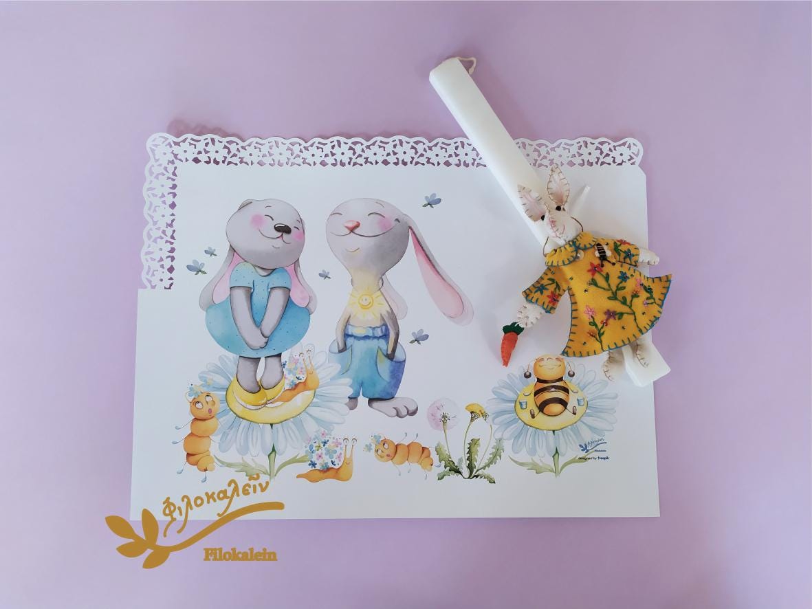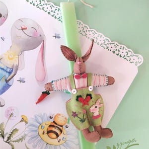 Greek Easter Candle with Felt Rabbit, Handmade Easter Candle for Goddaughter, Baby First Easter Lambada Gift