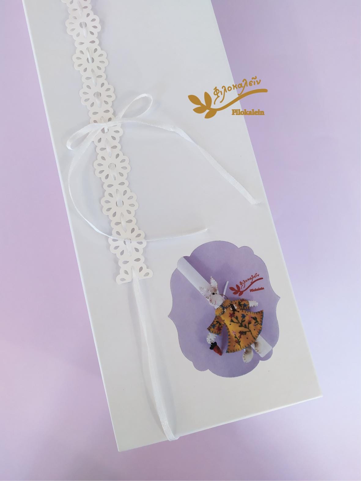 Inspired by the Greek lambada tradition, this Easter candle is a meaningful gift for a goddaughter, or a baby’s first Easter. The white candle and the soft handmade rabbit create a poetic balance between tradition and playfulness. The fully handmade felt rabbit becomes a keepsake — a symbol of faith, love, and new beginnings that remains long after Easter night.