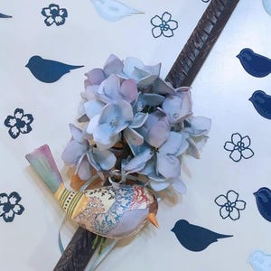 The fabric flower bouquet can be gently detached from the candle and kept as lasting décor. Placed inside the optional textured glass vase, it transforms into a delicate floral arrangement for a vanity table, dining console, bedside shelf, or workspace. It may also hang from a decorative hook or drawer knob, allowing spring to remain in the room all year long.