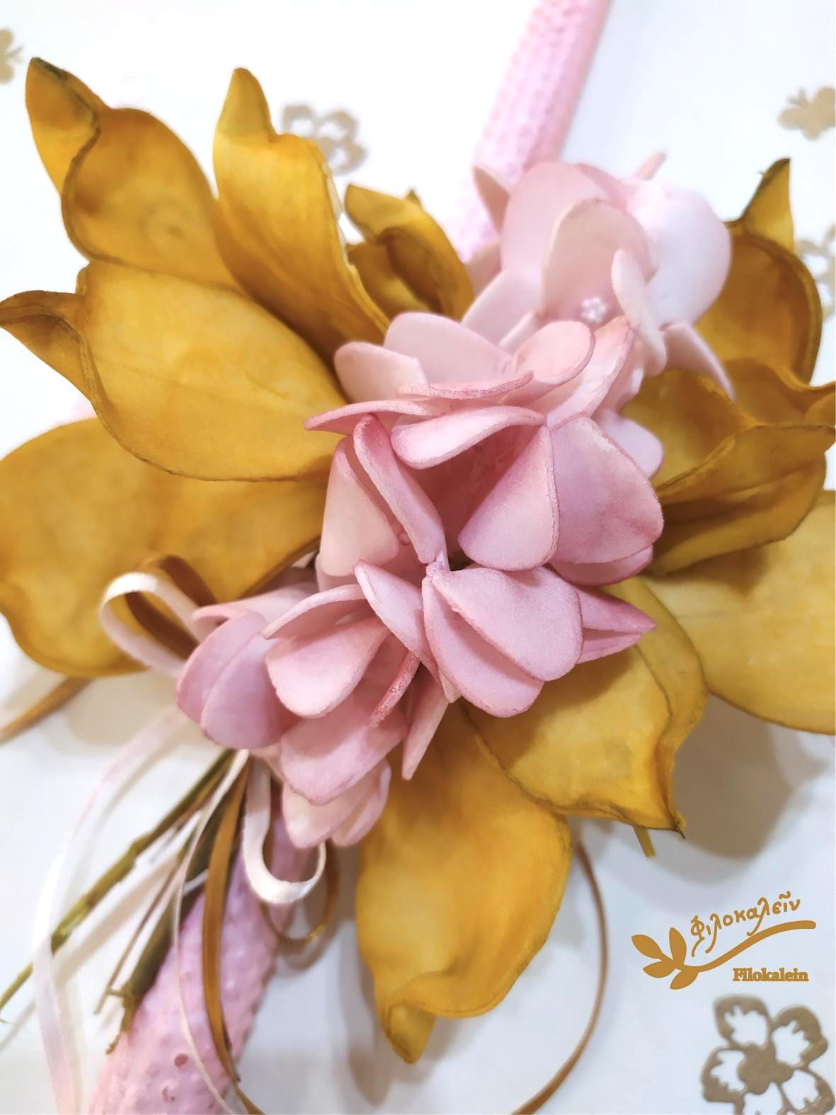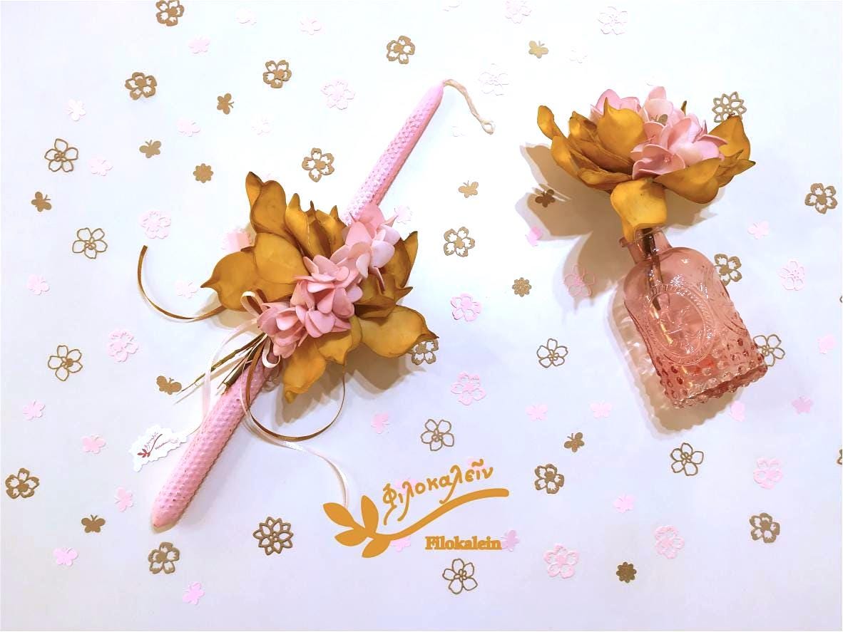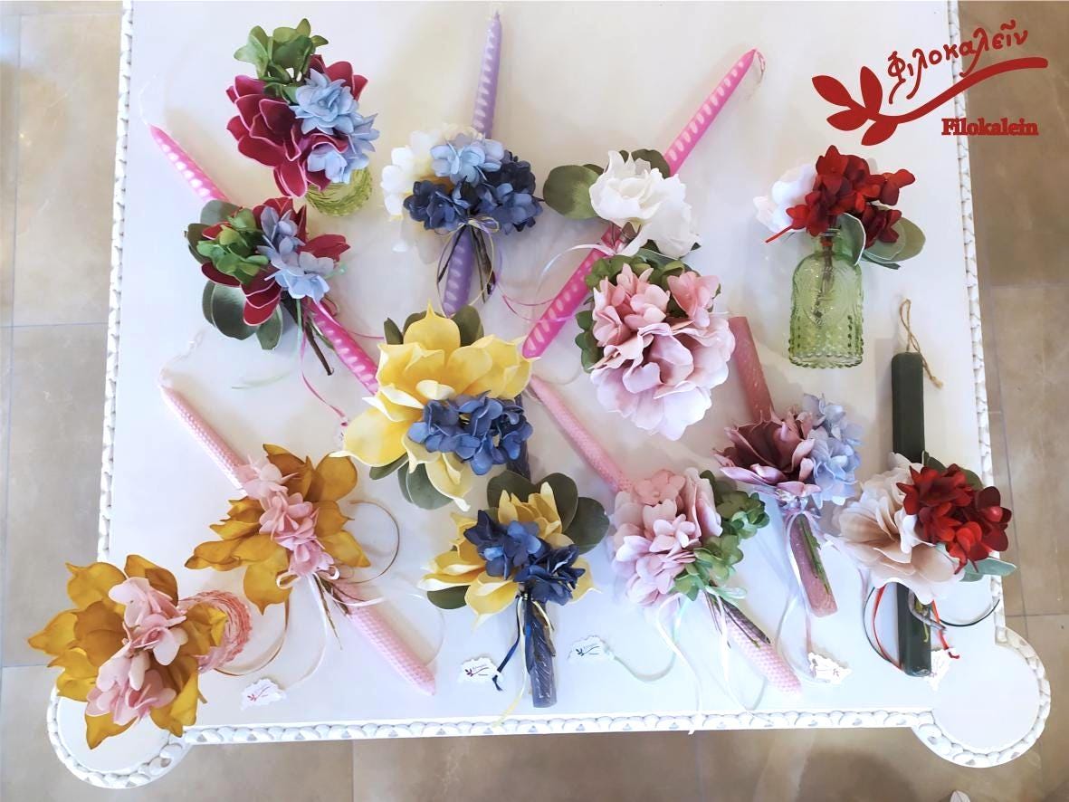 Floral Easter Candle with Fabric Bouquet – Greek Easter Lampada, Orthodox Easter Gift for Her