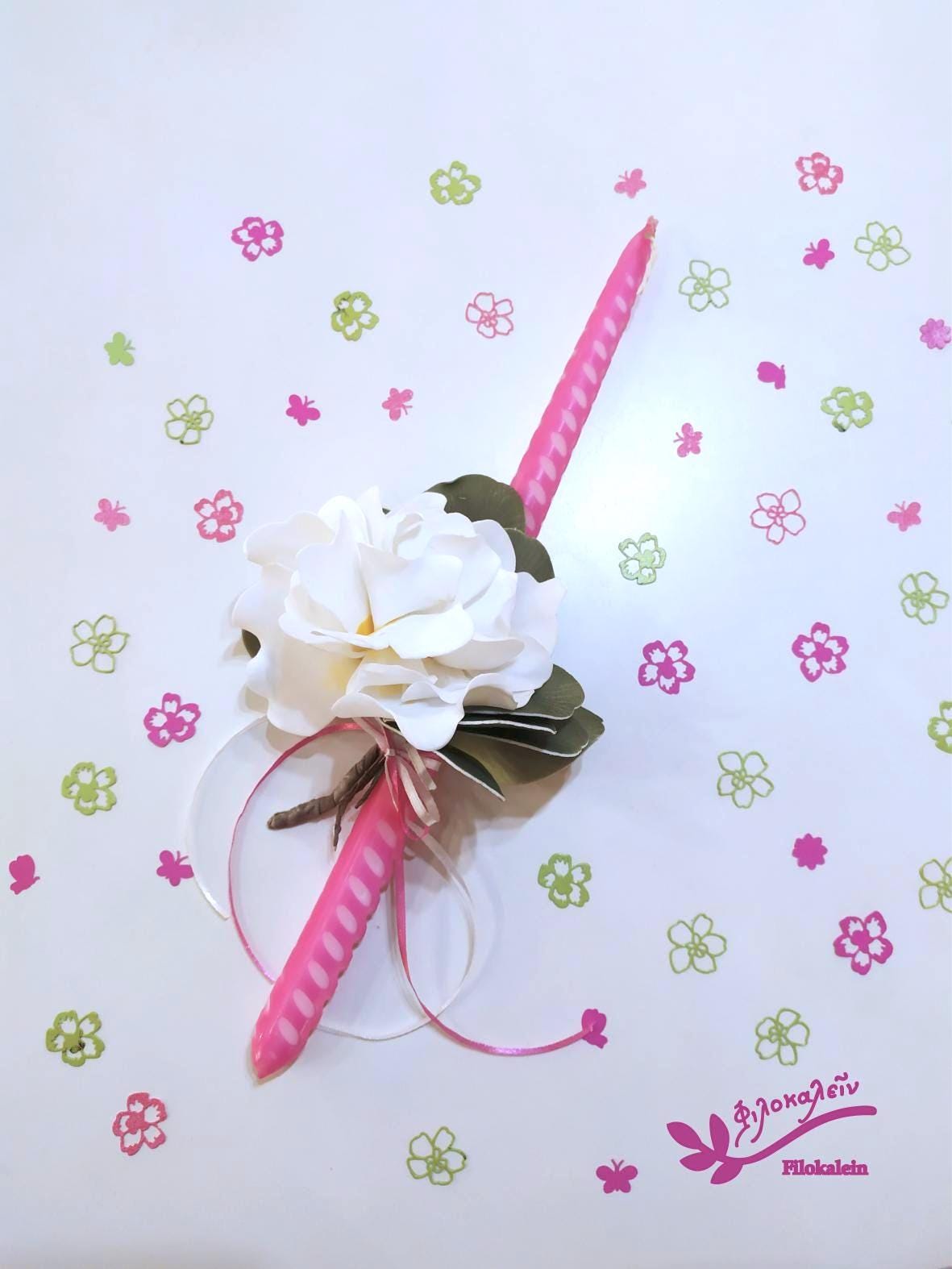 Greek Orthodox Easter Candle for Girl, Pink Floral Lampada with White Flower, Goddaughter Easter Gift, Handmade Lambada