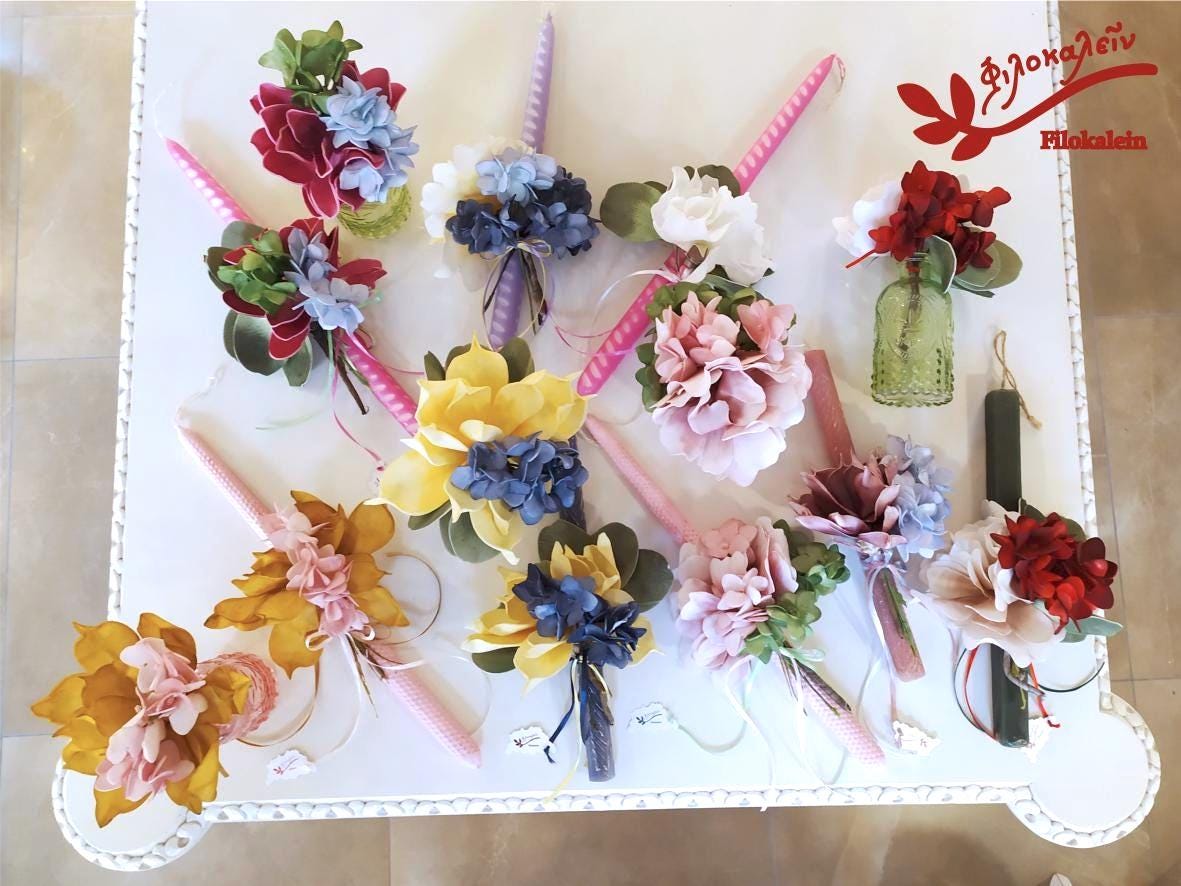 Greek Orthodox Easter Candle with Flower Bouquet, Floral Lampada with Detachable Vase Decor, Easter Gift for Her