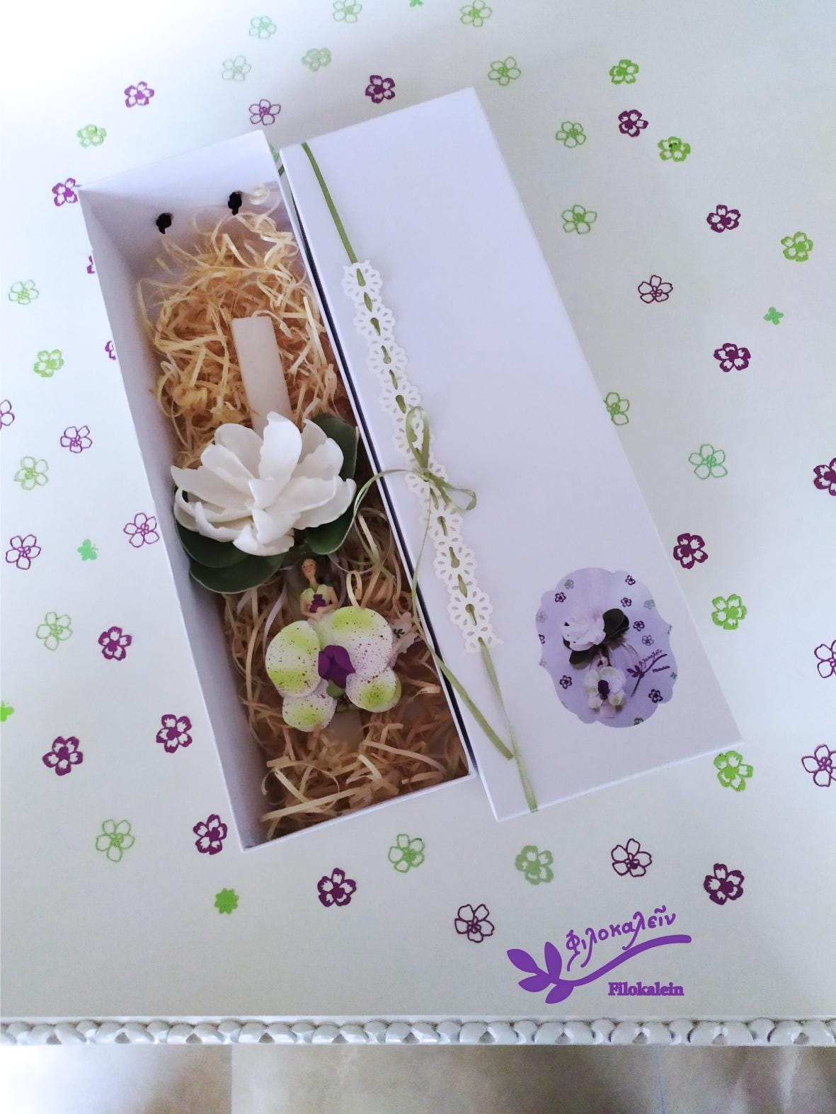 Unique Greek Easter Lampada with White Orchid Flower Fairy and Floral Bouquet