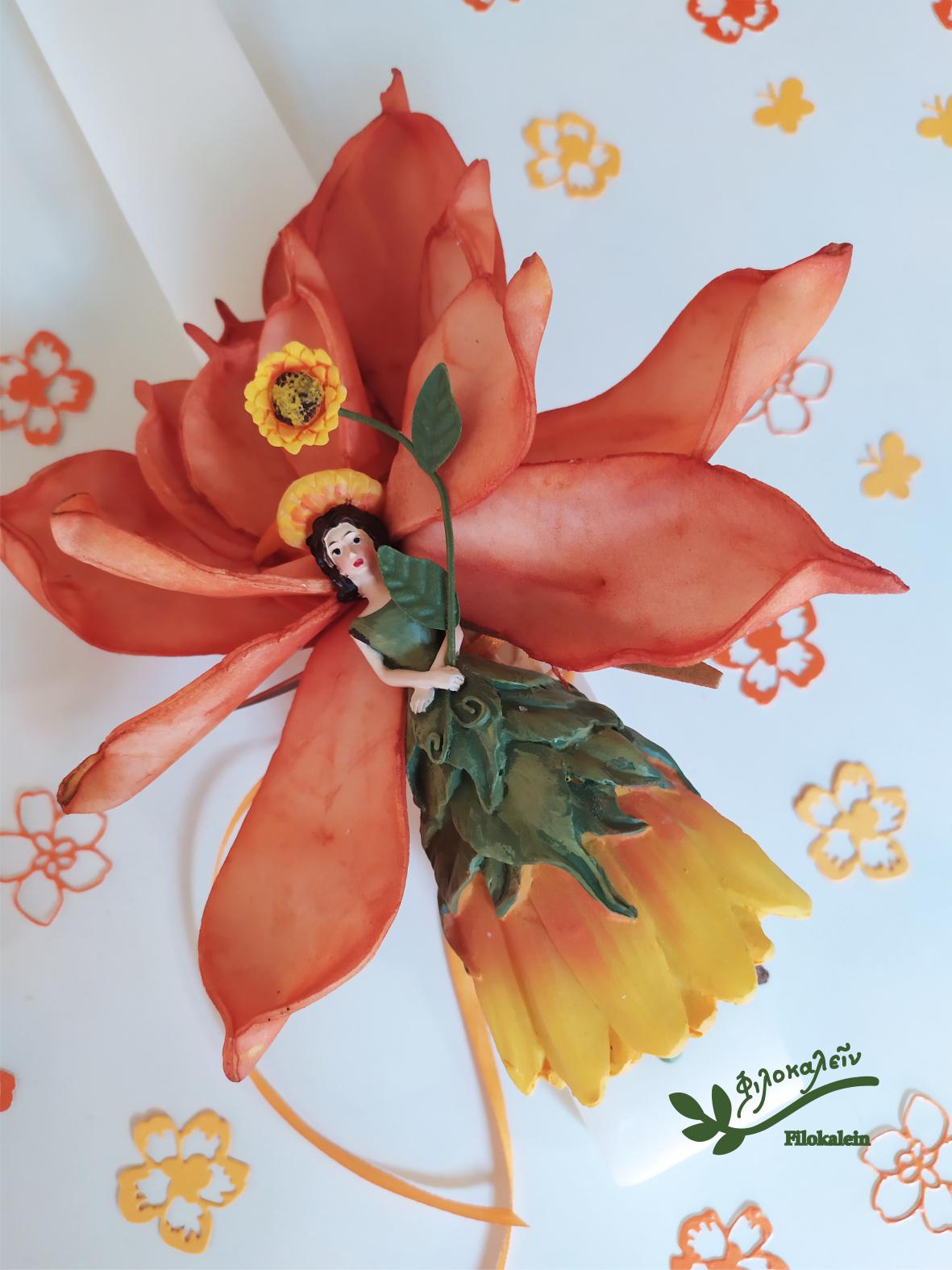 Easter Lampada with Sunflower Flower Fairy & Latex Flower – Handcrafted Floral Easter Candle, Greek Easter Gift for Girls and Goddaughter