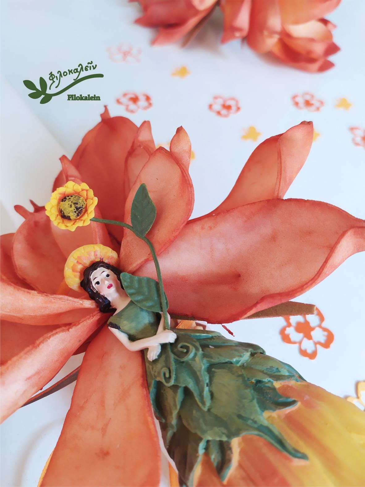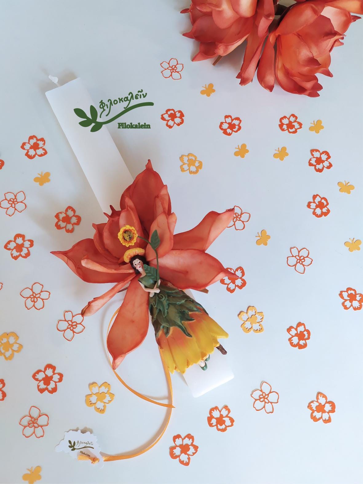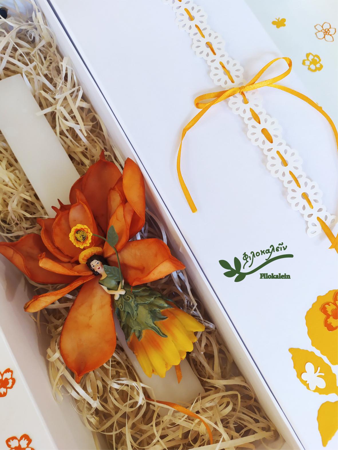 Welcome Easter light into your home with this handcrafted Easter lampada, a poetic Floral Easter candle inspired by the joyful symbolism of the sunflower. Featuring a radiant sunflower flower fairy and a lifelike latex flower in warm orange and green tones, this lampada is a meaningful Greek Easter gift for a goddaughter, daughter, mother, or someone who fills your life with sunshine.