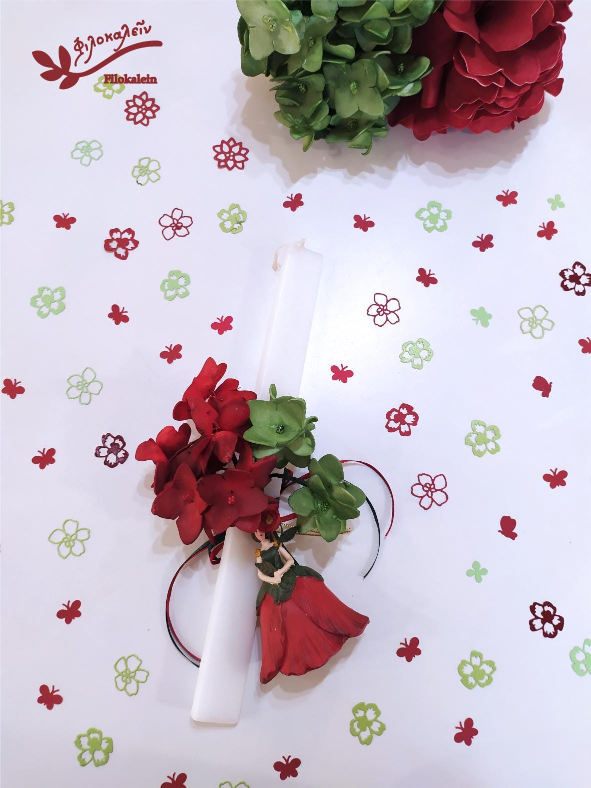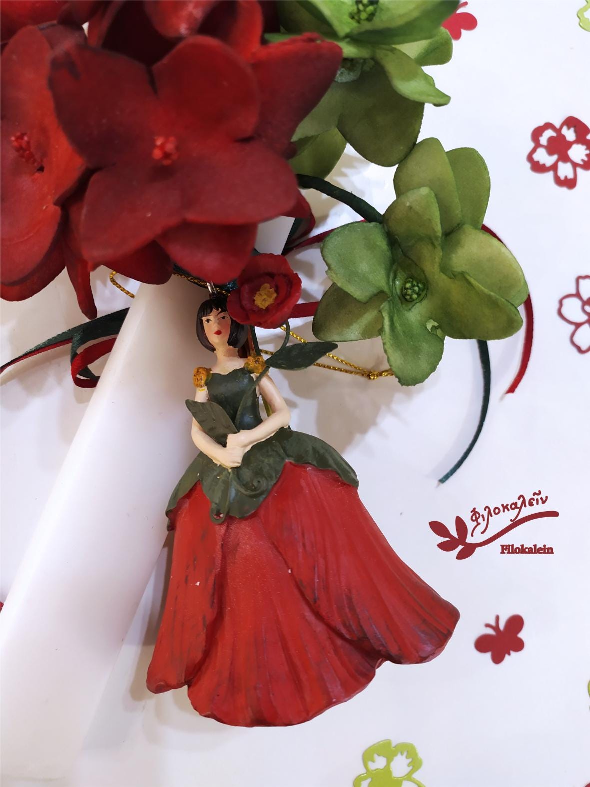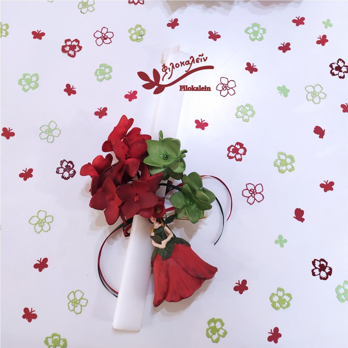Celebrate Easter with this handcrafted Greek Easter lampada, featuring a red poppy flower fairy and a vibrant floral bouquet of latex flowers in red and green hues. This beautiful Orthodox Easter candle blends deep symbolism with artistic charm, making it a meaningful gift for a goddaughter, teenage girl, mother, or special friend.