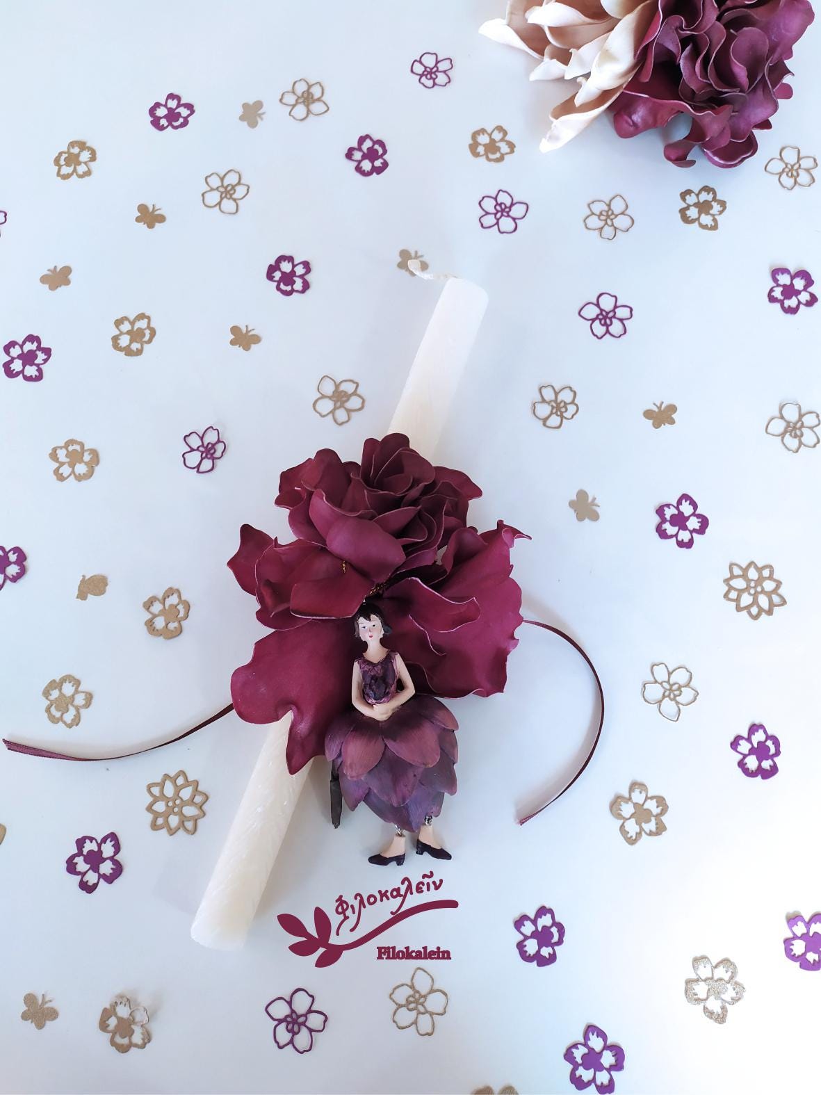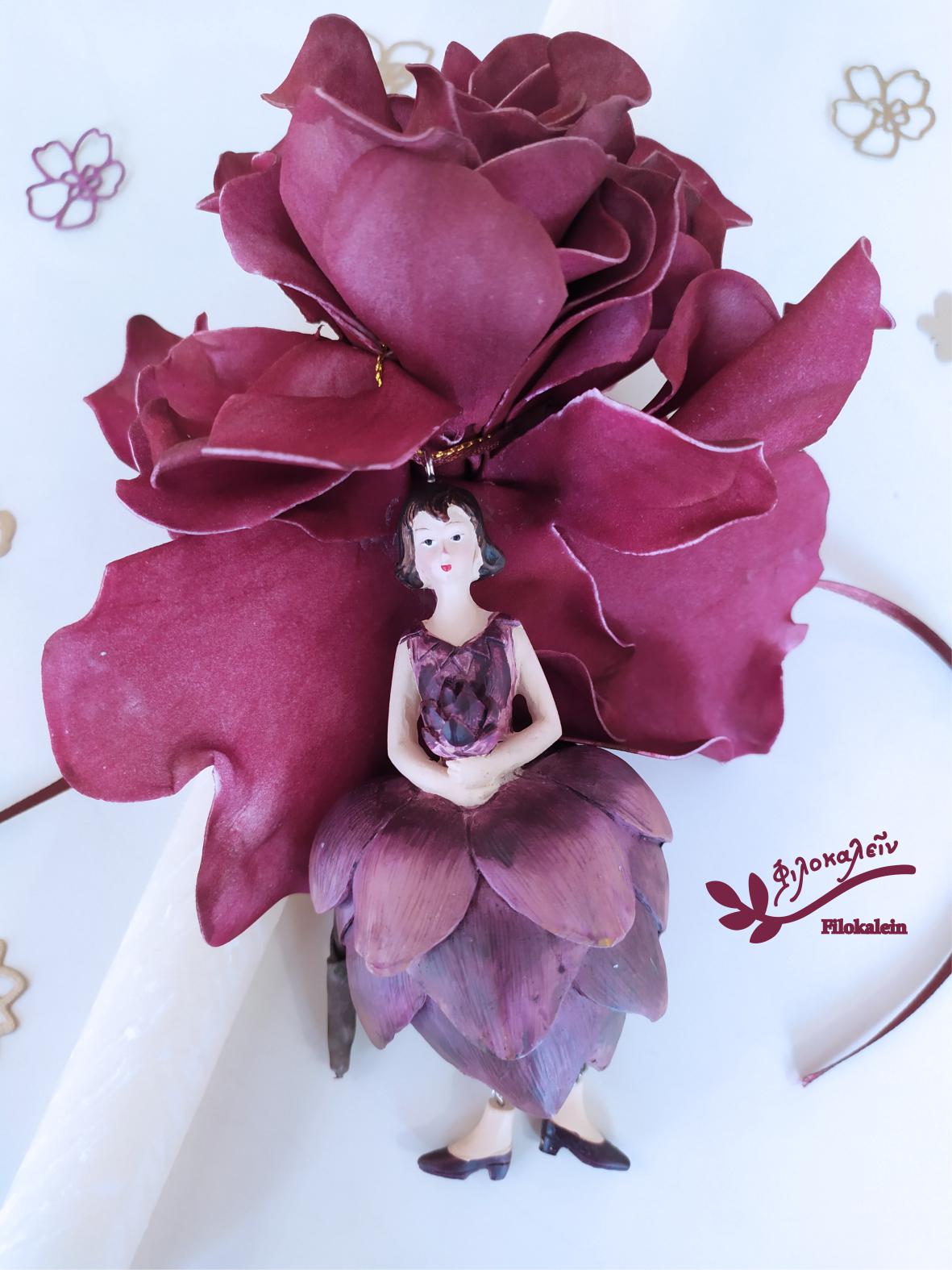 Celebrate Easter with a poetic handcrafted Easter lampada, inspired by nature’s quiet strength and renewal. This unique Floral Easter Lampada features an enchanting artichoke flower fairy paired with a rich, lifelike latex flower in deep purple and wine tones — a meaningful Easter candle gift for your goddaughter, mom, or someone truly special.