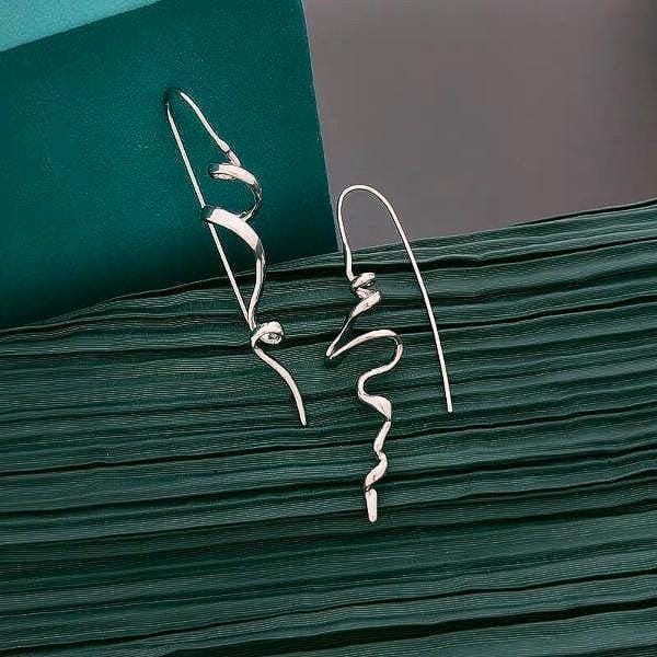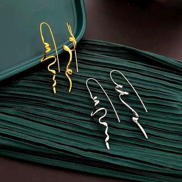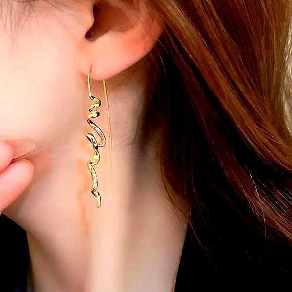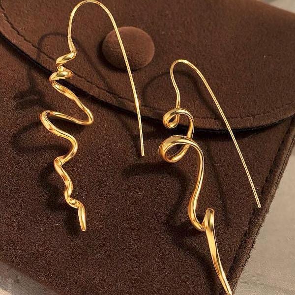 Gold abstract swirl drop earrings, minimalist fluid line earrings, artistic curvy statement dangles—crafted for those who find beauty in motion and poetry in shape.