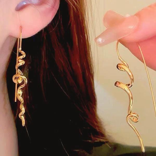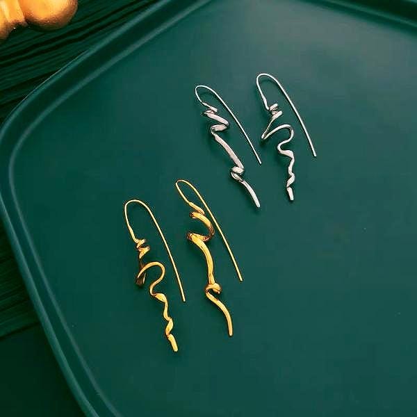 These luminous earrings are formed from brass and finished with high-quality vacuum gold plating, giving them a warm glow that feels like captured sunlight. Their organic, flowing curves mimic the effortless rhythm of nature—like drifting water, curling smoke, or the soft unfurling of a vine.