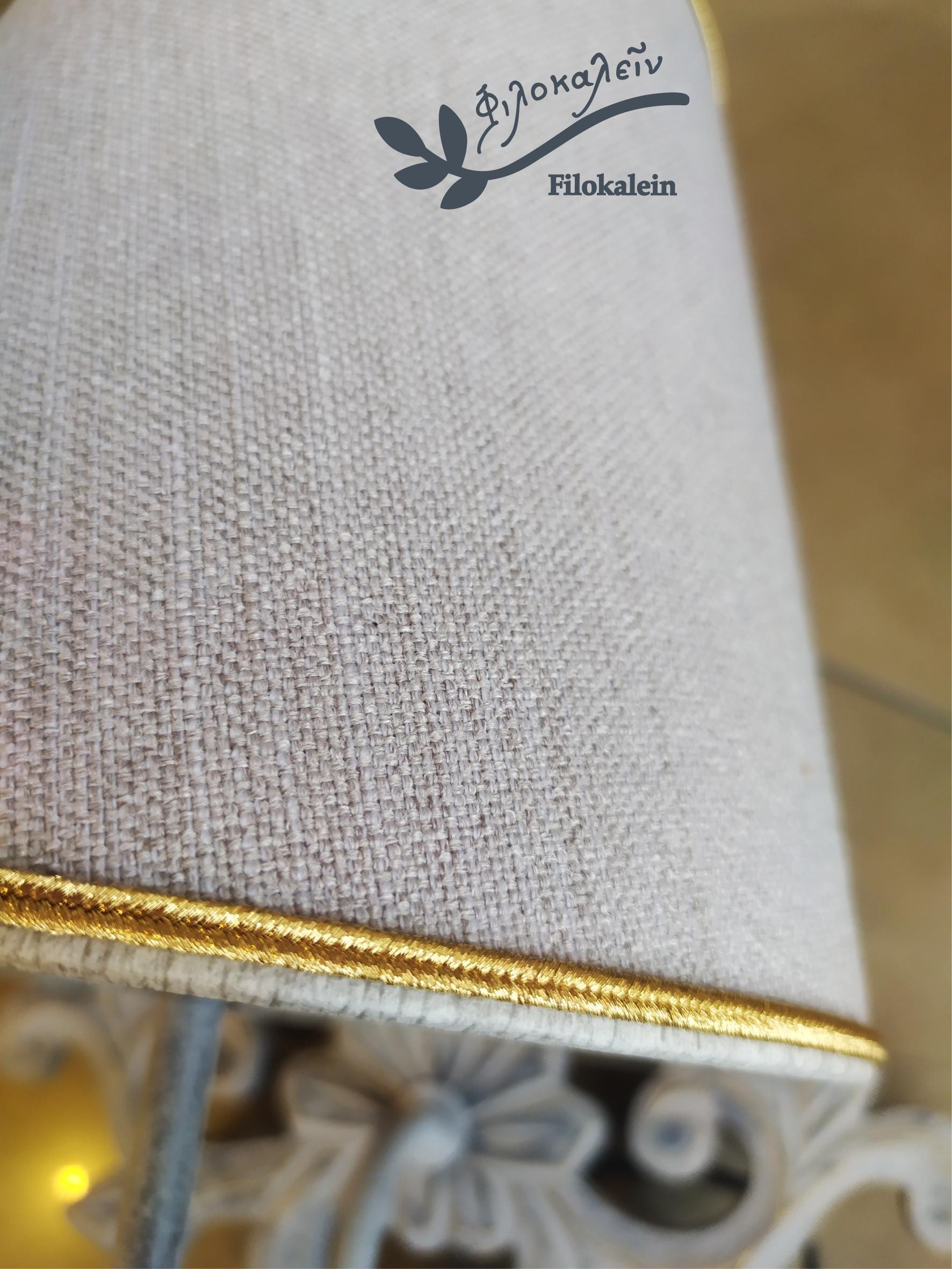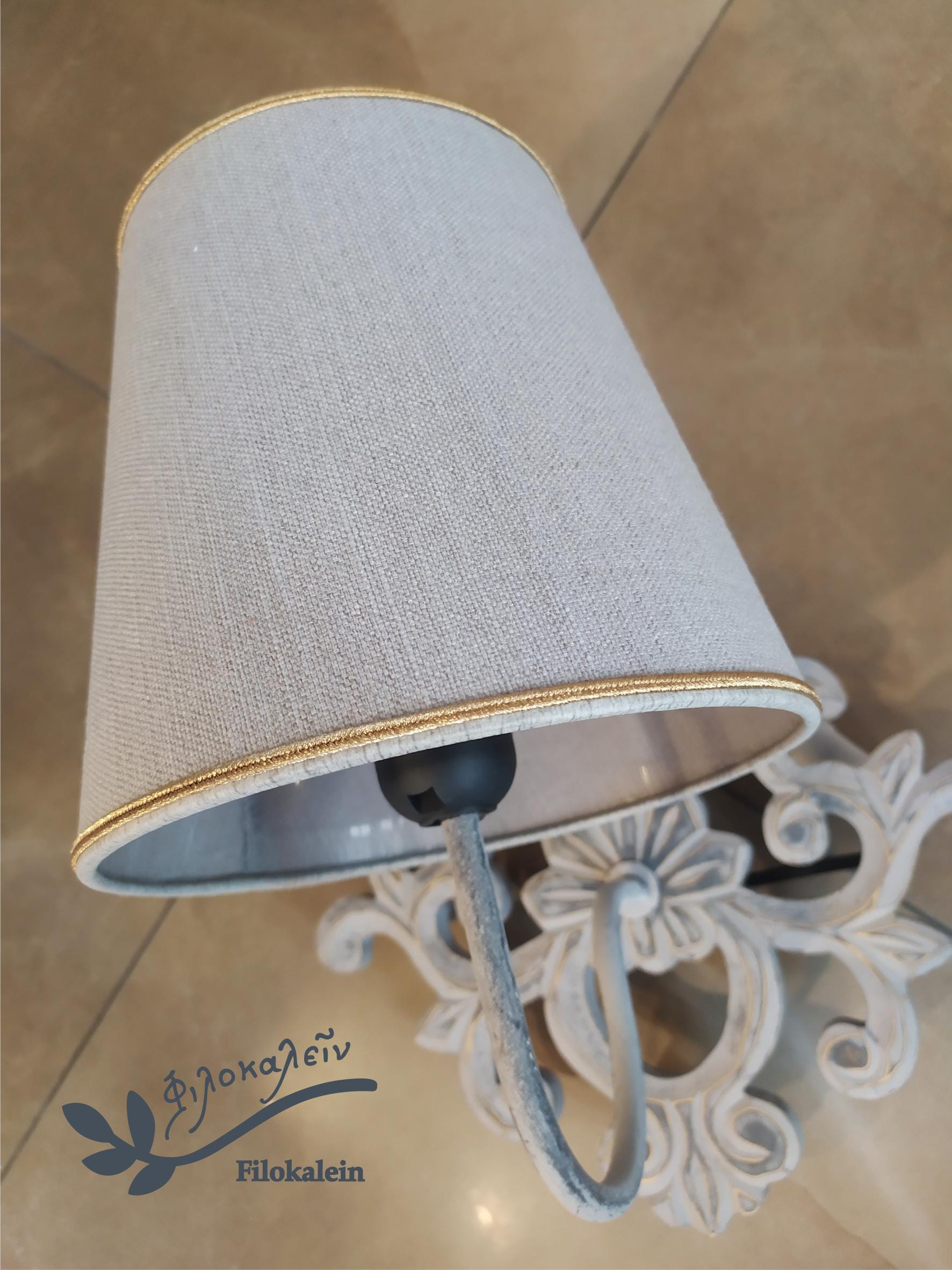 French country wall sconces set of 2, with gray and gold ornate wood backs and linen fabric shades, bring timeless elegance to vintage home decor.