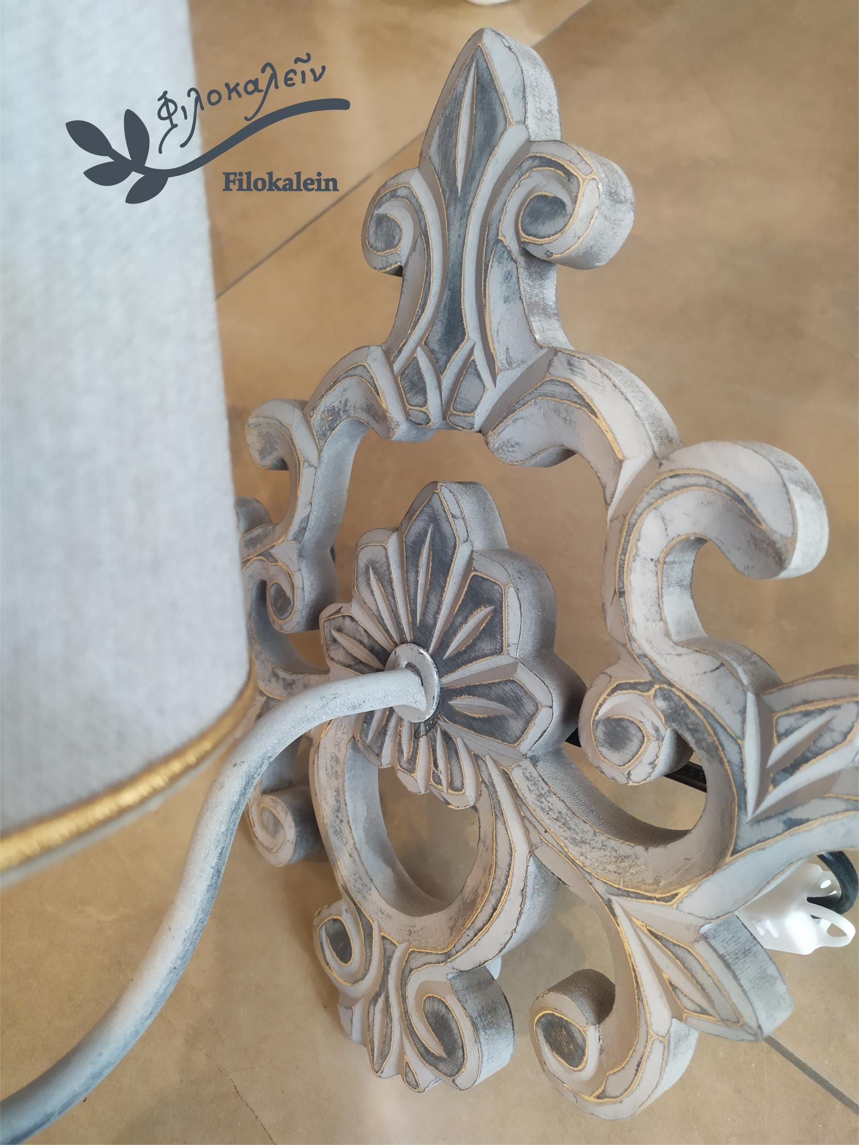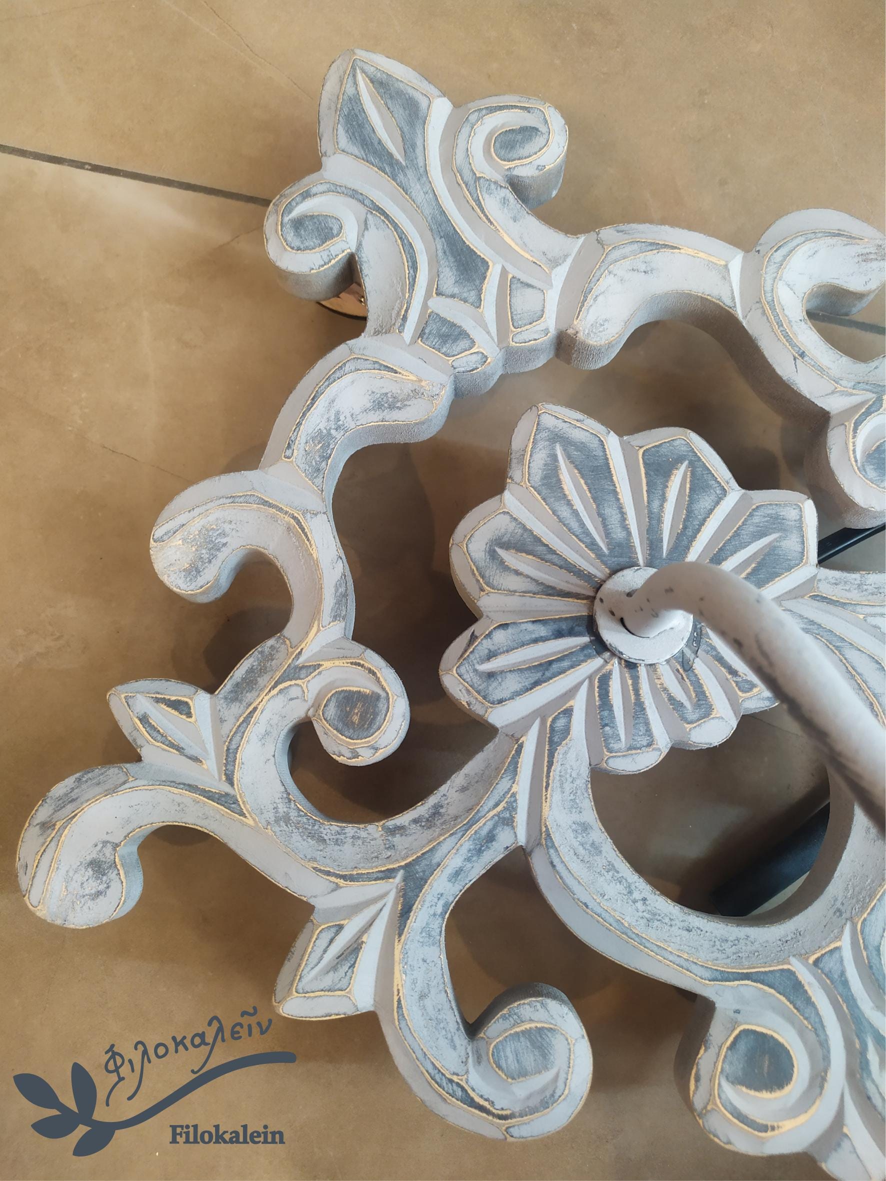 The hand-carved scrollwork and warm linen light evoke a sense of quiet luxury—ideal for farmhouse hallways, French cottage bedrooms, or refined entryways.