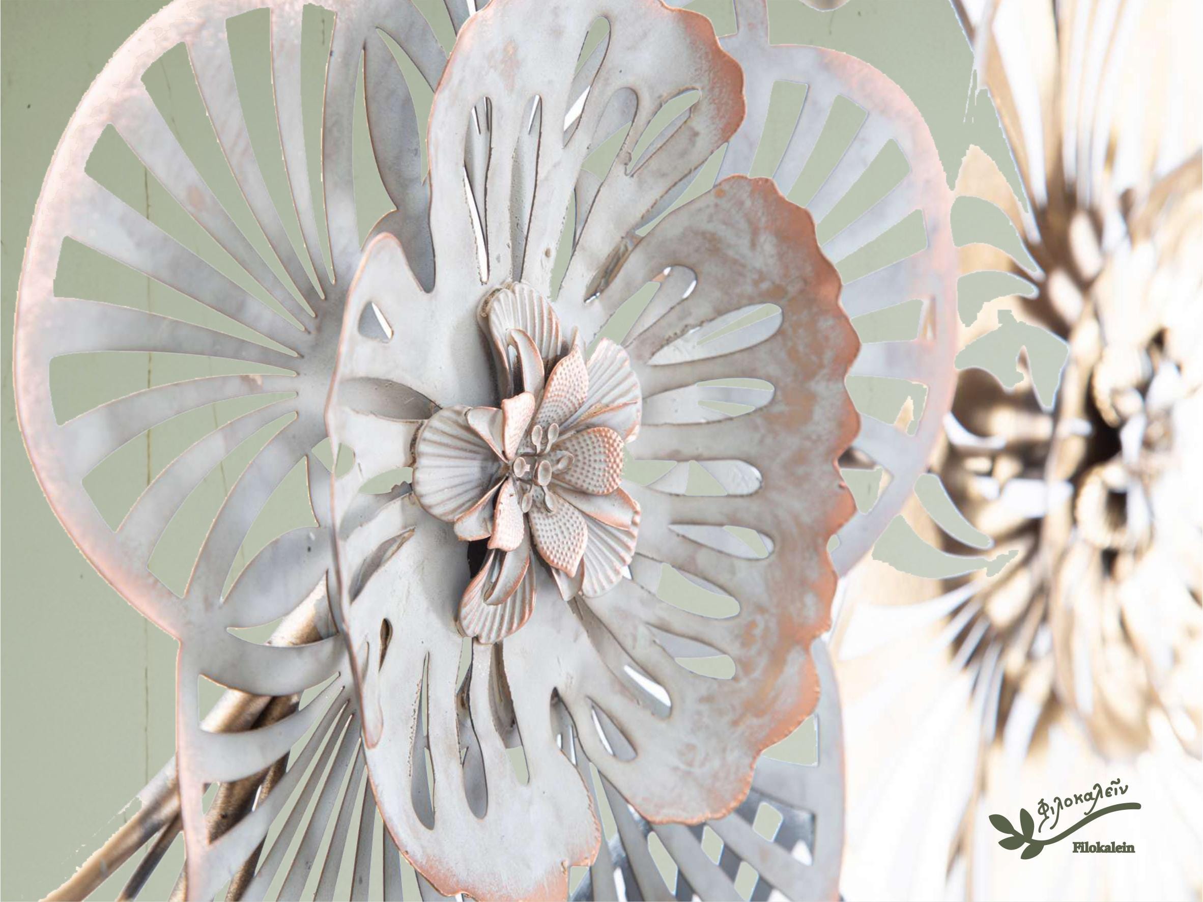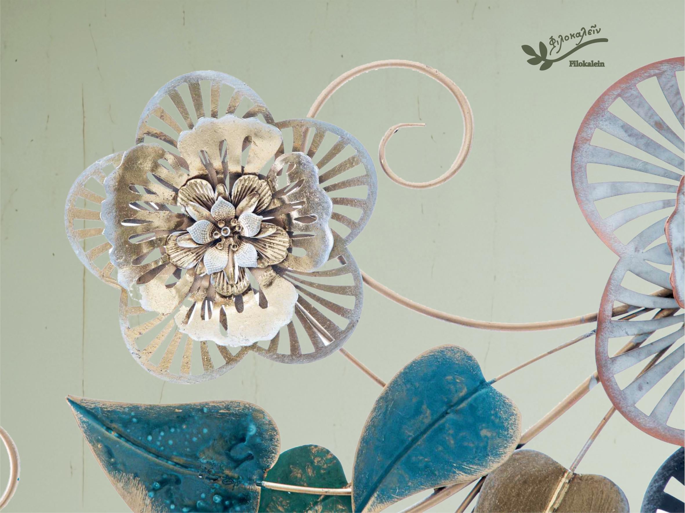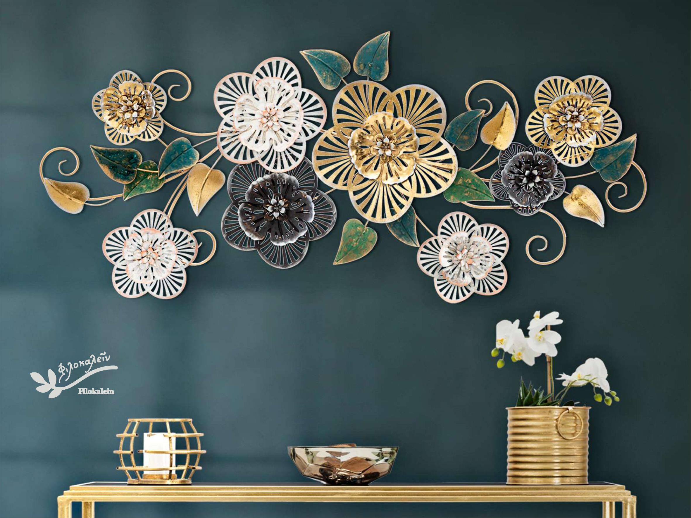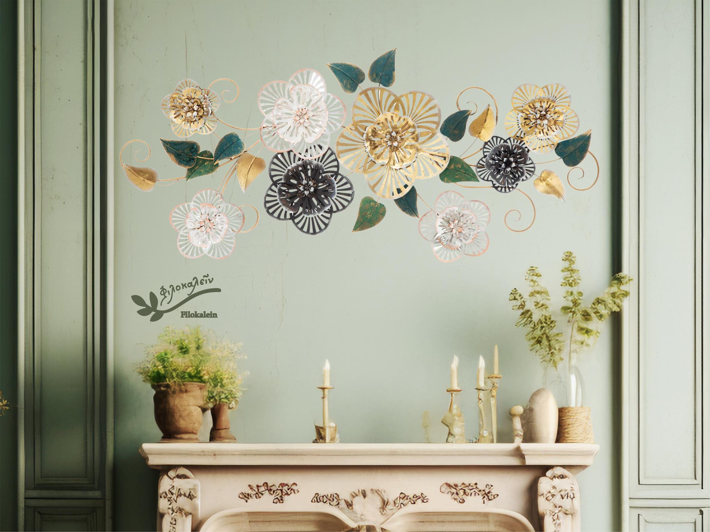 Embrace elegance with this Metal Wall Flower Art, a Large Floral Wall Decor in gold, white, blue, green and black iron that blossoms across your walls like a timeless garden. Each petal and leaf is carefully shaped, turning iron into poetry, creating a Romantic Home Decoration and Modern Wall Sculpture that whispers beauty into every corner.