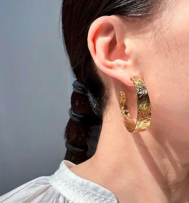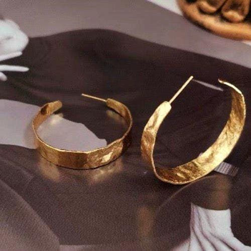 Where timeless beauty meets raw elegance — these hammered gold hoop earrings echo the voice of vintage style and bold confidence.