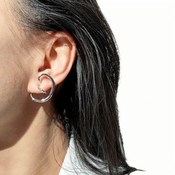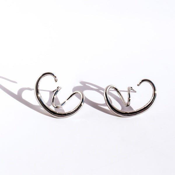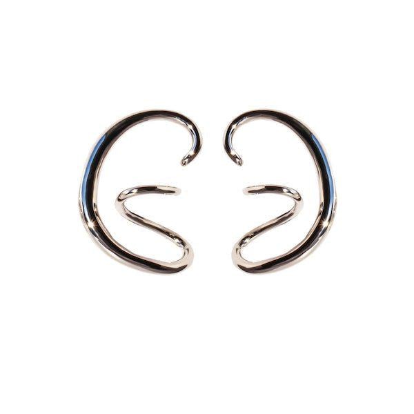 Silver statement swirl earrings that dance with light and form — these sculptural pieces curve like whispered secrets, bold and elegant in their motion. Designed with a geometric ear cuff silhouette, they echo modern art in wearable form — sleek, fluid, and unapologetically striking.
