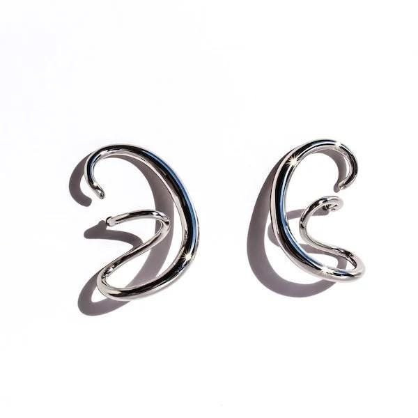 Silver Plated Swirl Statement Earrings: Modern Geometric Minimalist Ear Cuff Design