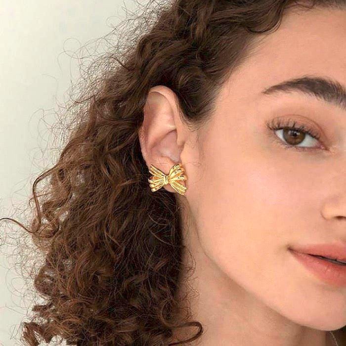 Gold Bow Knot Earrings: Elegant Brass Ribbon Studs