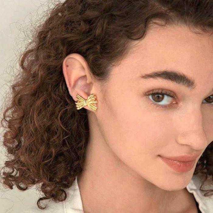 Crafted from brass and plated in rich gold, their sculpted bow design captures the beauty of classic style with a modern twist.