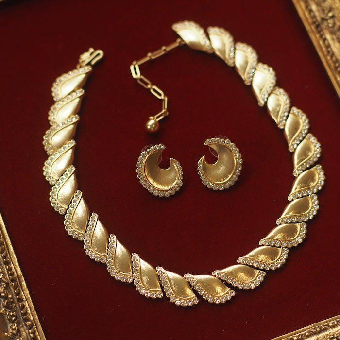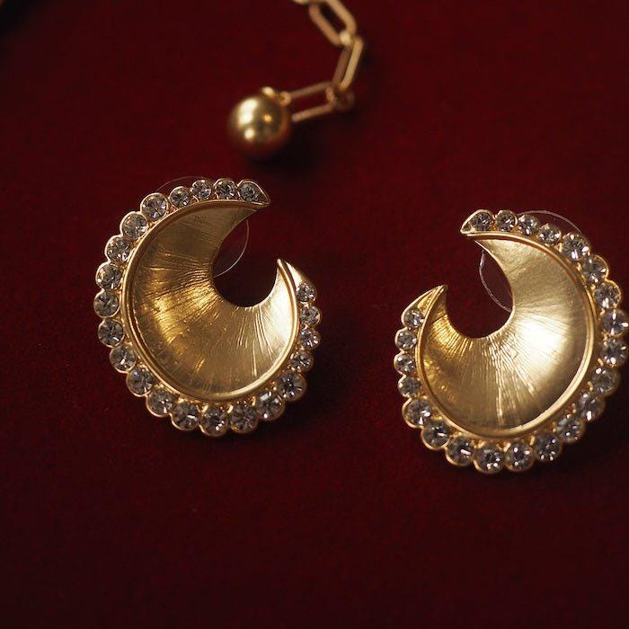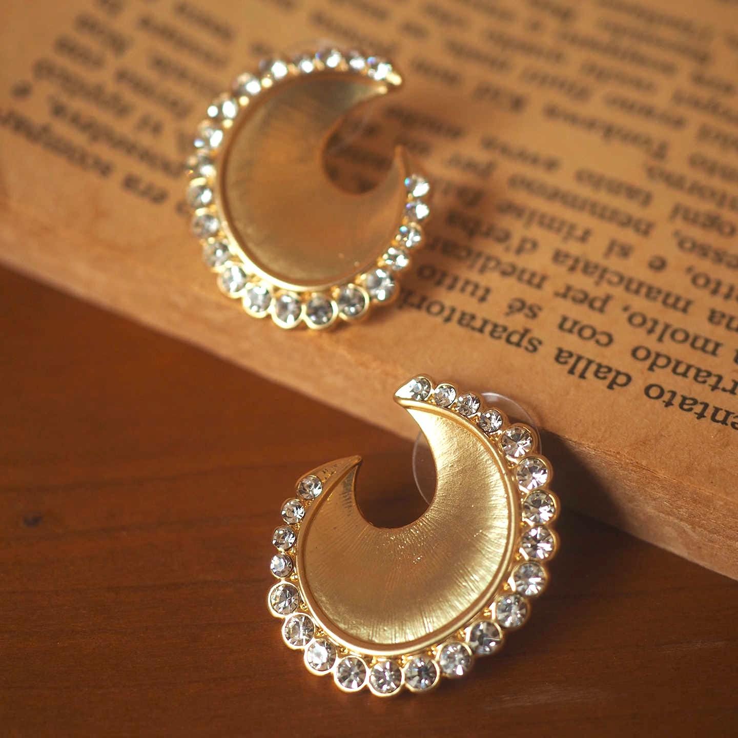 Vintage Trifari style gold moon earrings — where the glow of twilight meets the shimmer of starlight.