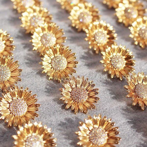 At the heart of each stud, sparkling stones radiates warmth and brilliance — a symbol of joy, vitality, and love that endures.