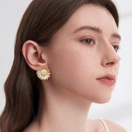 Gold Plated Sunflower Stud Earrings: Vintage Floral Jewelry