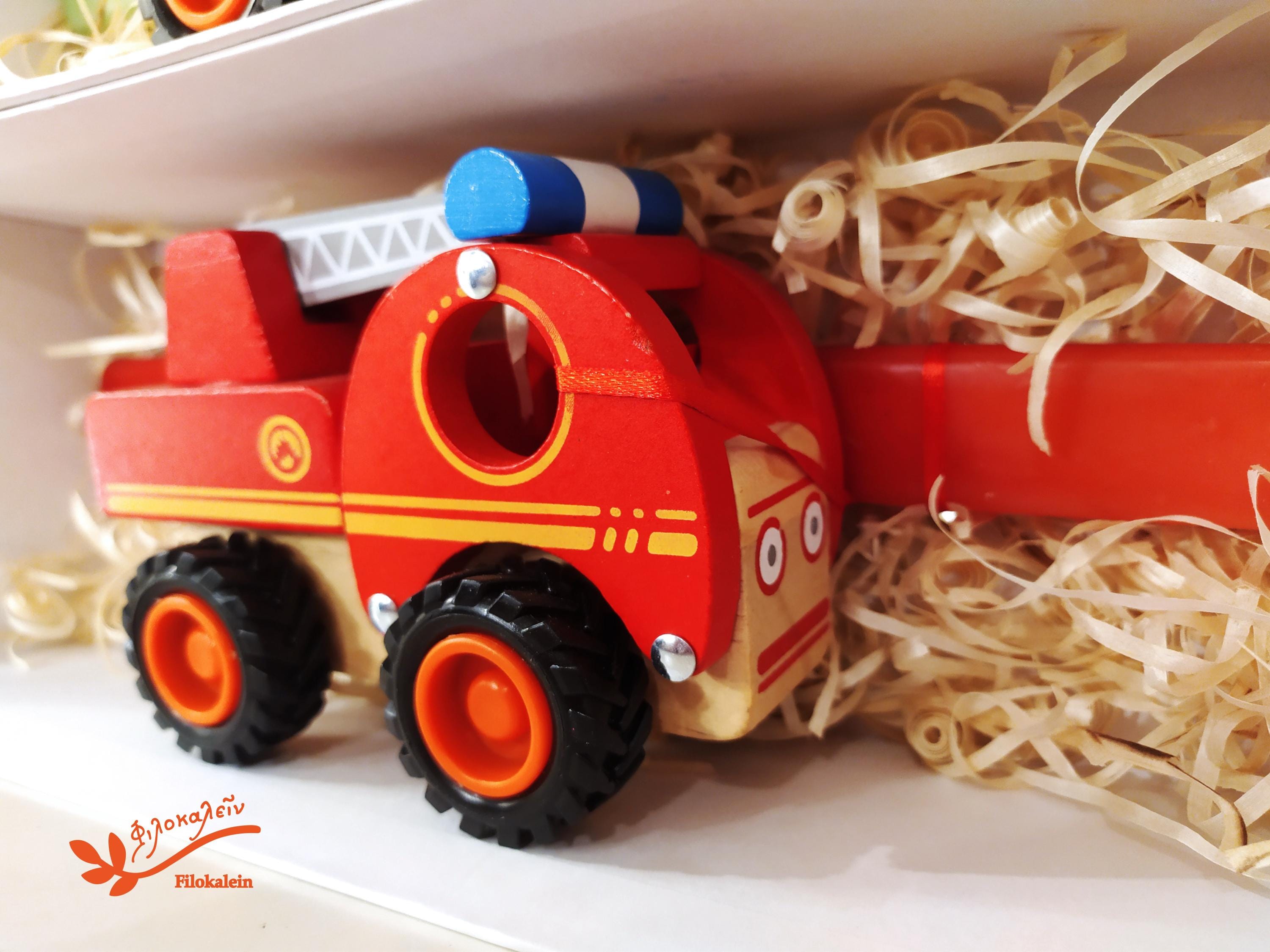 Fire Truck Easter Lampada, Wooden Toy Easter Candle, Greek Easter Gift for Boys