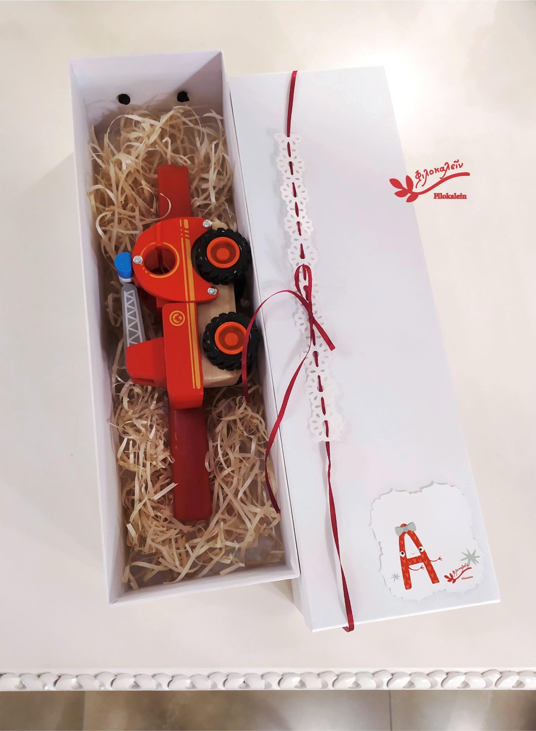 Fire Truck Easter Lampada with Wooden Toy – Handcrafted Greek Easter Candle, Boys Easter Gift, Godson Lampada