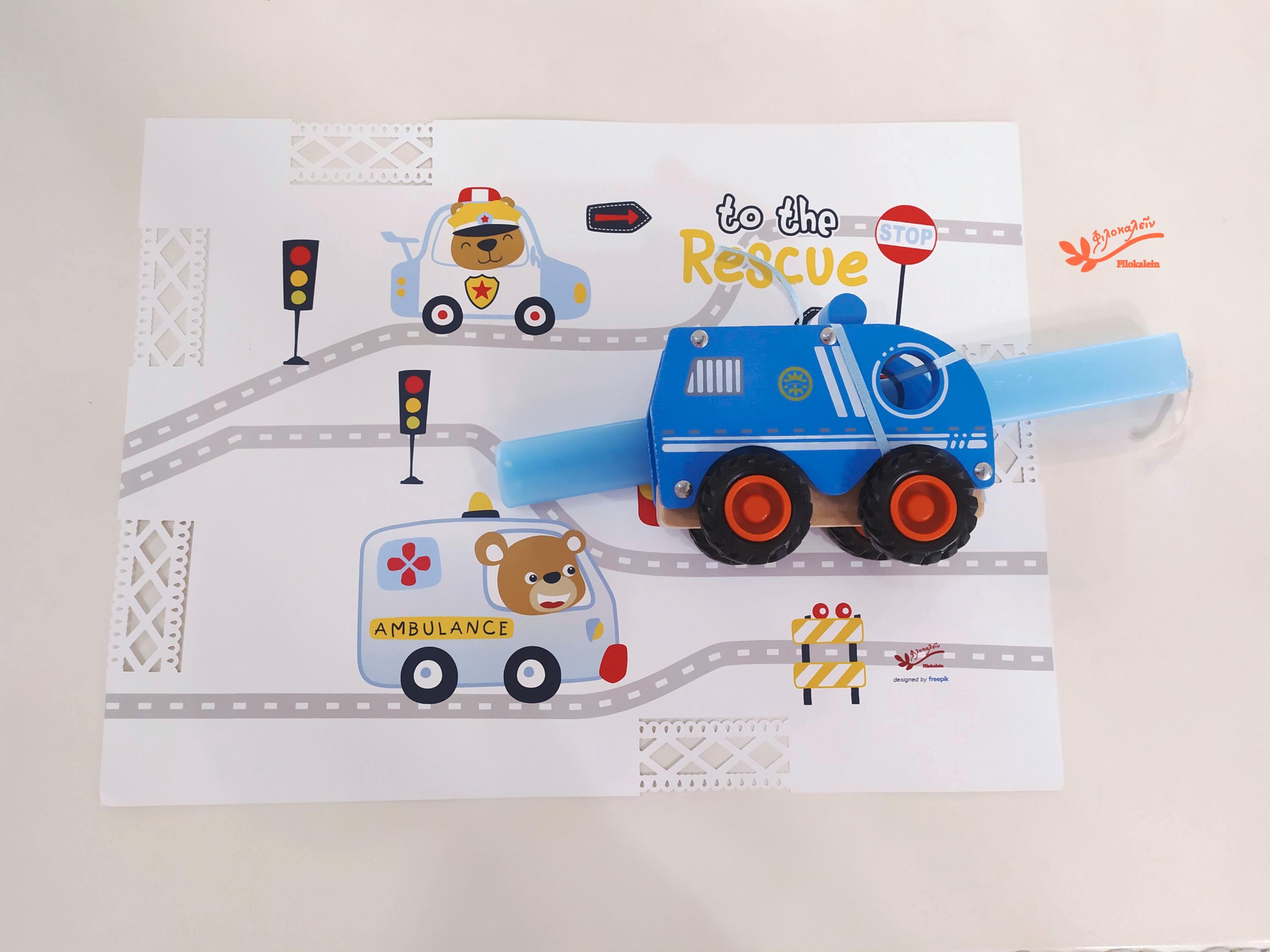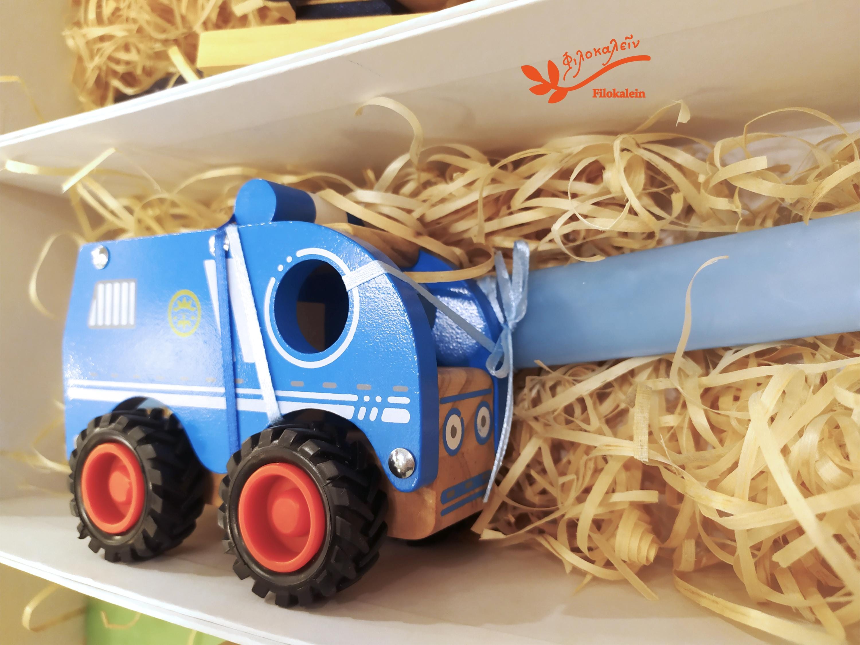 Police Car Easter Lampada, Greek Easter Candle with Wooden Toy, Boys Easter Gift, Godson Lampada, Wooden Police Car