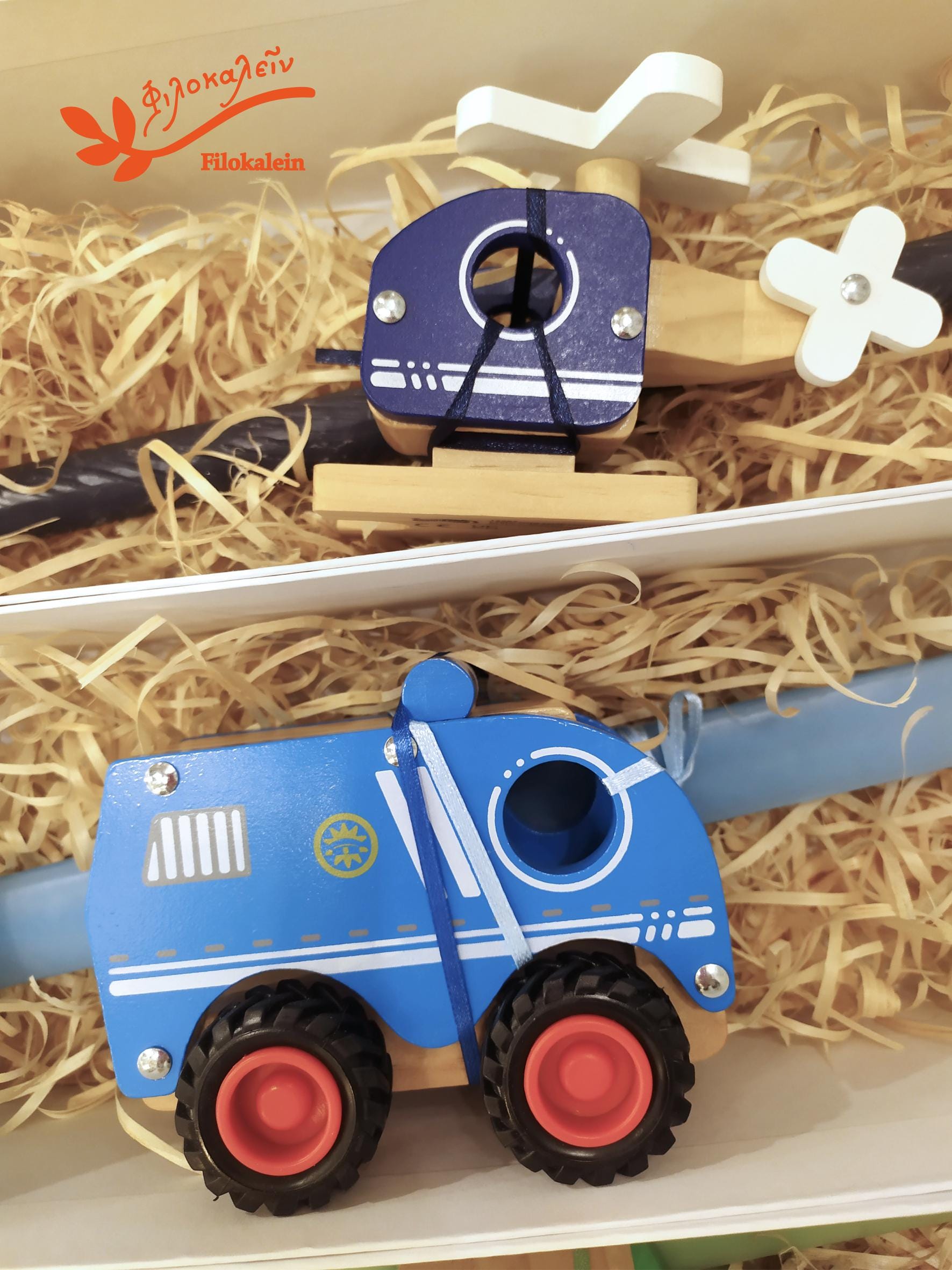 This handcrafted Easter lampada blends Greek Easter tradition with playful imagination. A charming wooden police car is attached to the candle, standing proudly on duty — and once Easter night has passed, it easily detaches and becomes a beloved wooden toy, ready for endless missions.