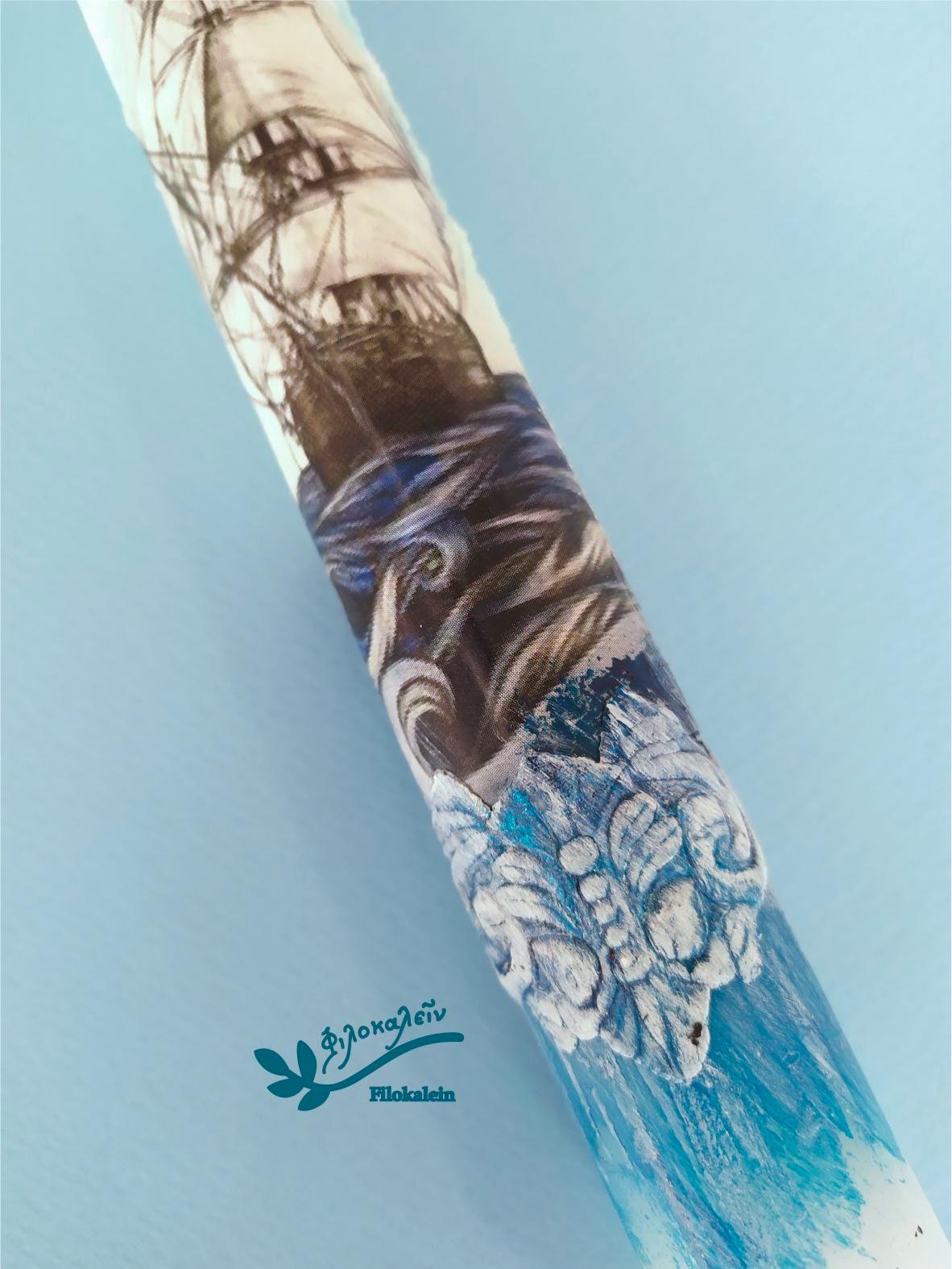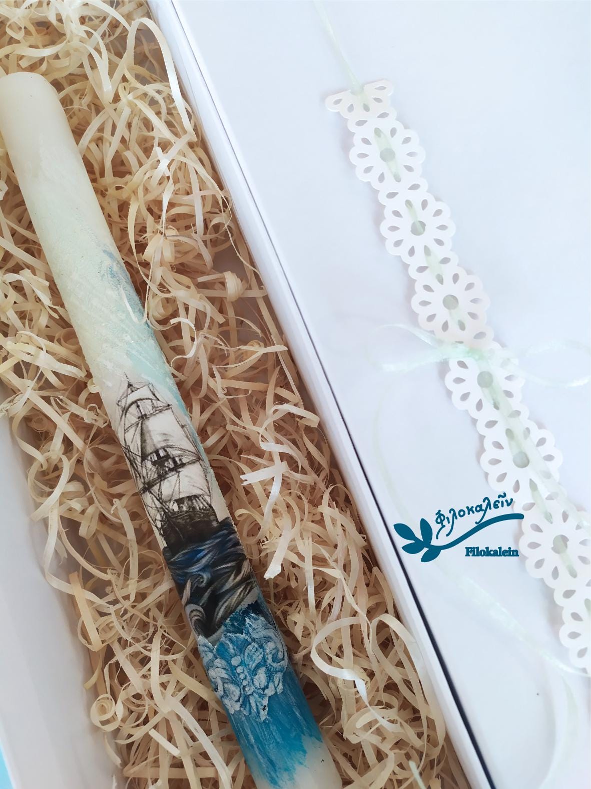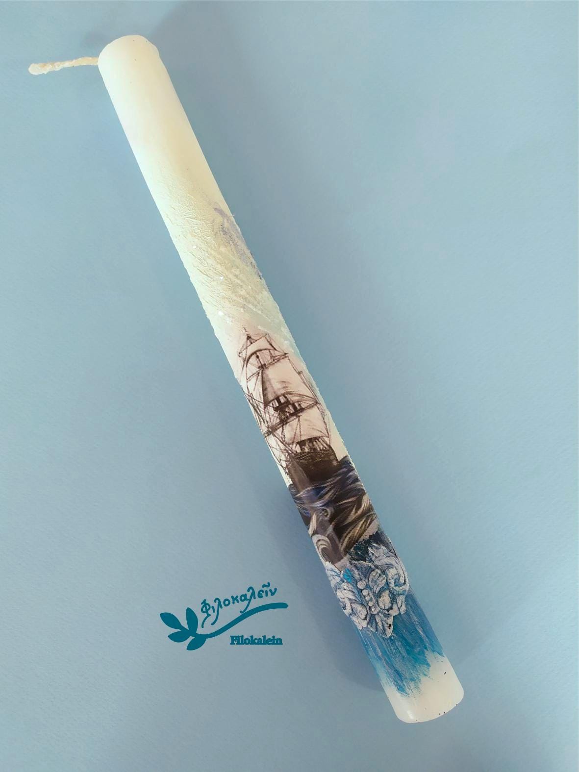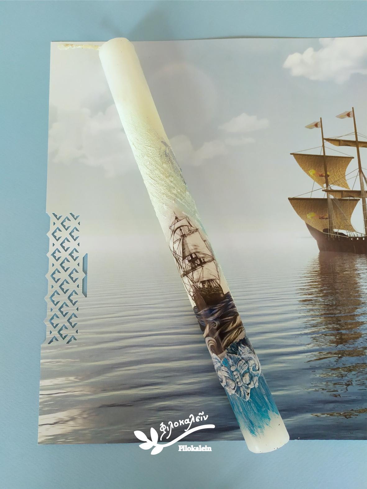 Sailing Boat Easter Candle Lampada, Nautical Greek Easter Gift for Men, Handmade Sea Theme Easter Decor