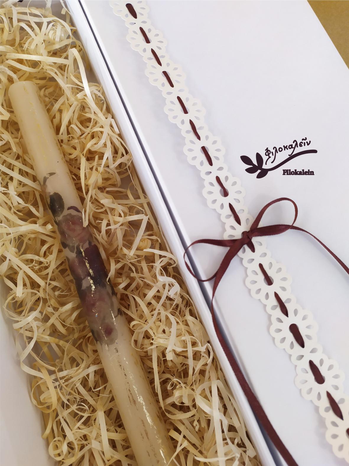 Orthodox Easter Candle with Dark Red Roses – Luxury Greek Lampada – Hand Painted Floral Holy Saturday Gift