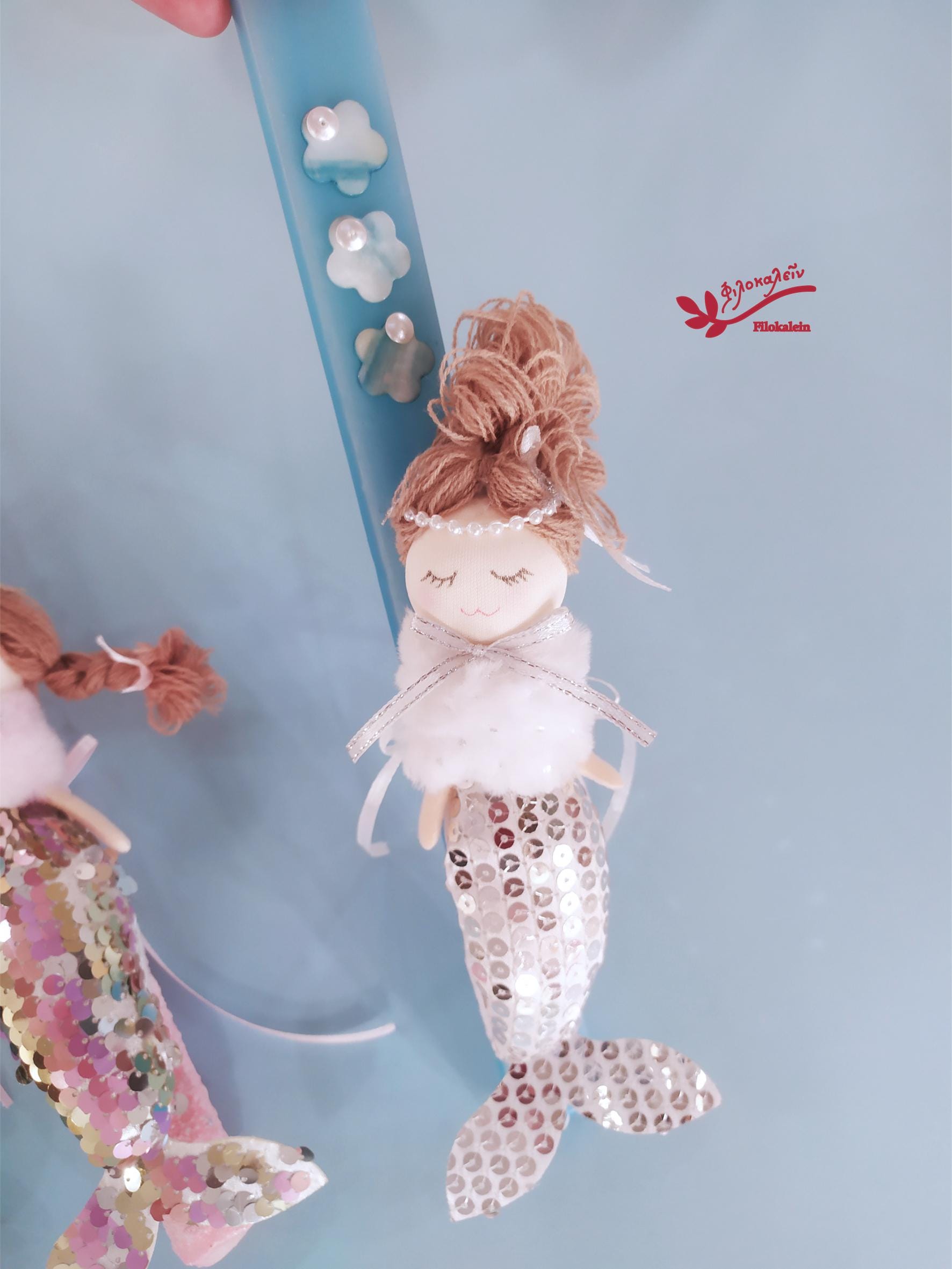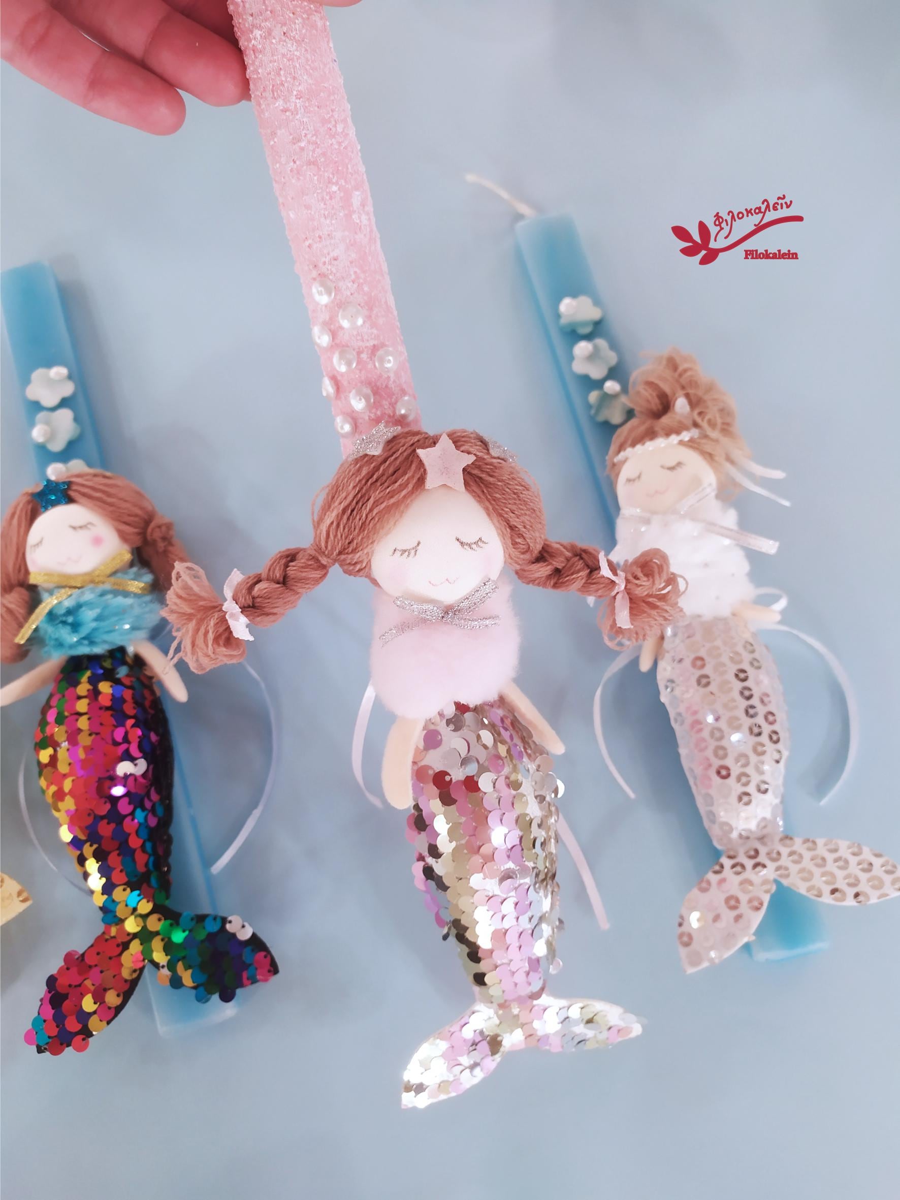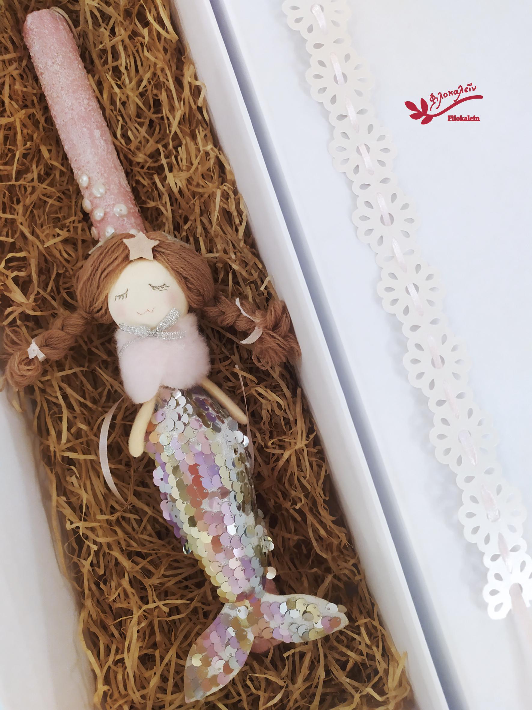 Mermaid Easter Candle for Girl – Greek Lampada with Fabric Mermaid Doll, Orthodox Goddaughter Gift