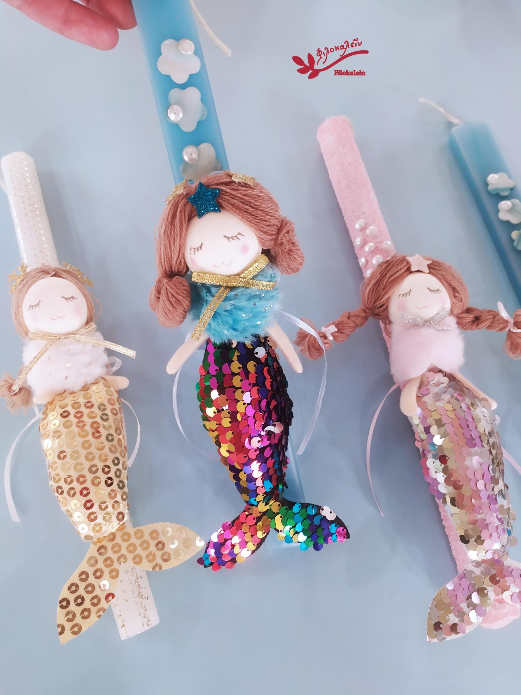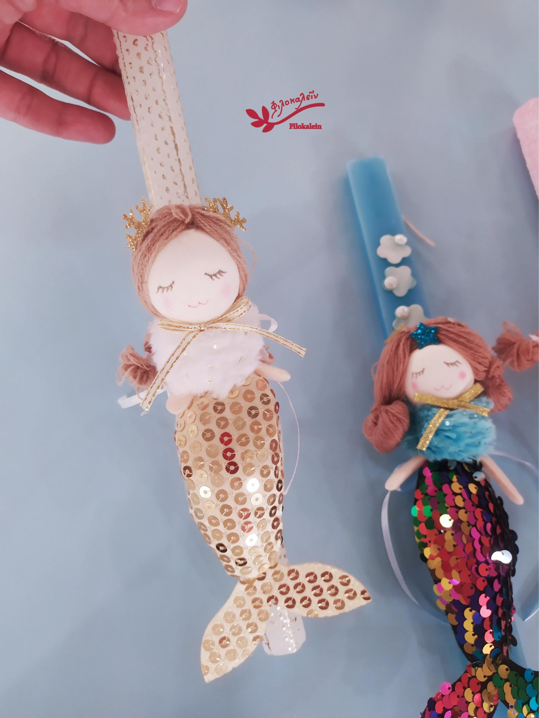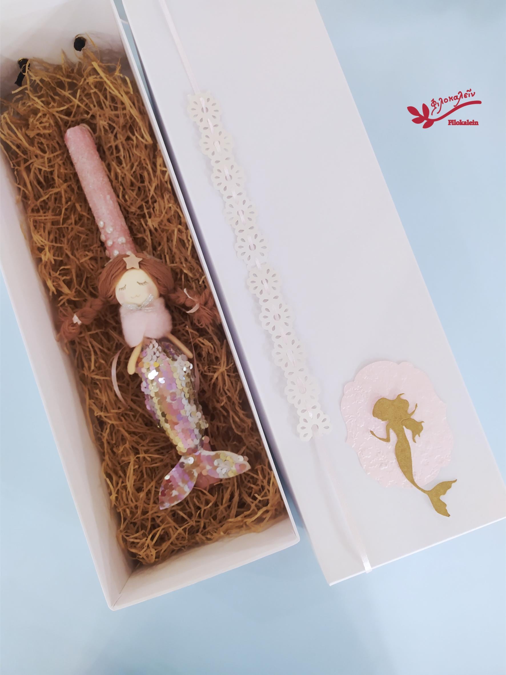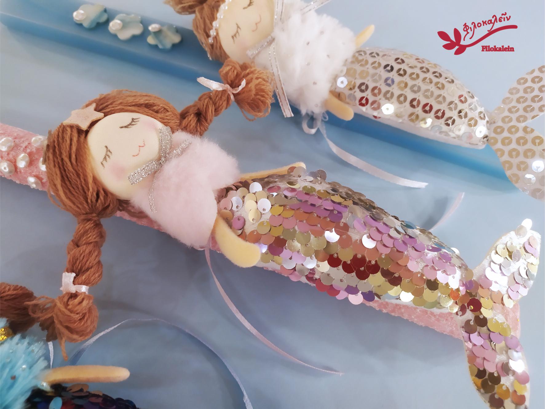 Mermaid Easter Candle for Girl – Greek Lampada with Fabric Mermaid Doll, Orthodox Goddaughter Gift