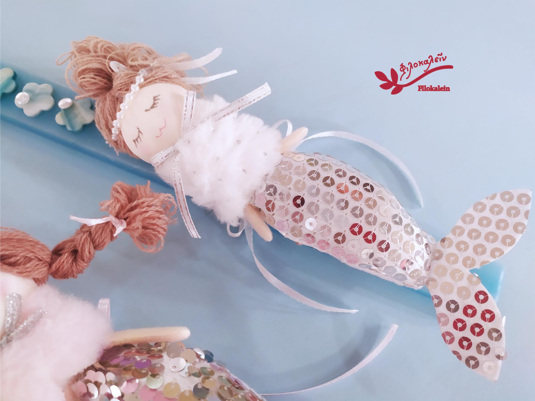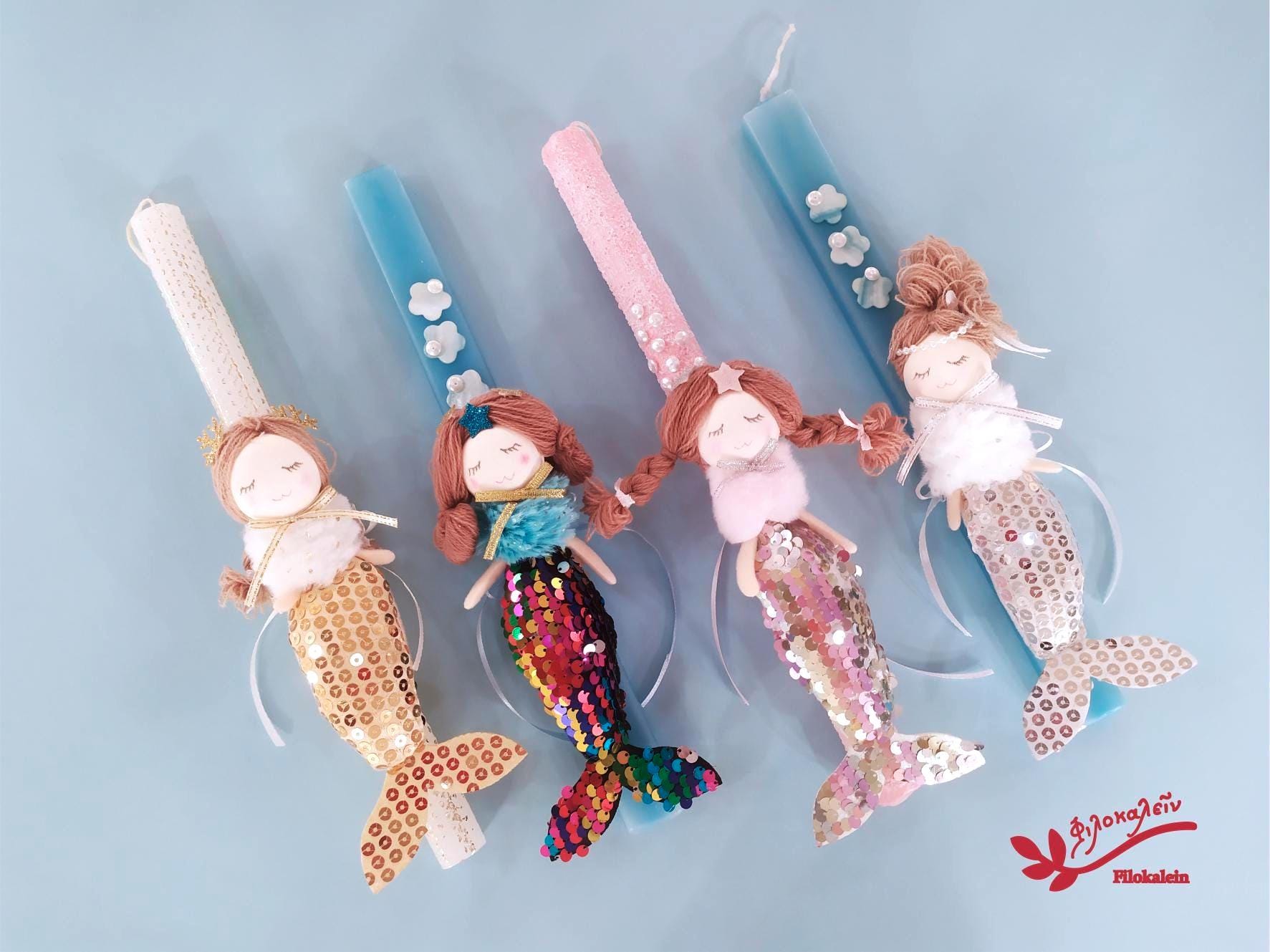 Mermaid Easter Candle for Girl, Greek Lampada with Fabric Mermaid Doll, Orthodox Goddaughter Gift, Easter Keepsake