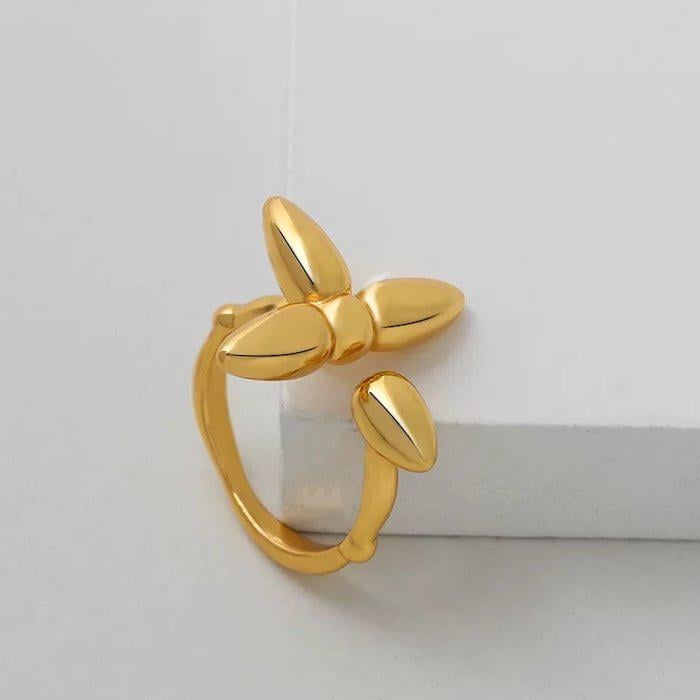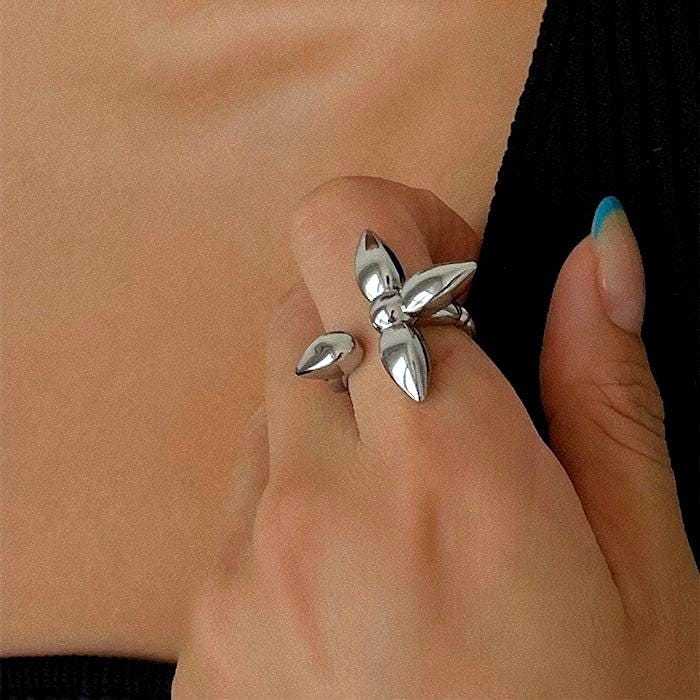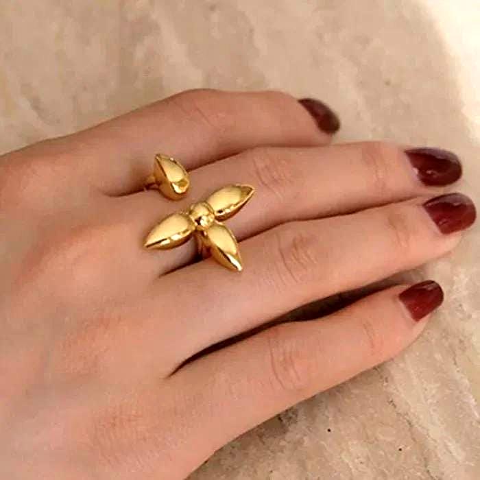 This sculptural floral piece wraps gently around your finger, its smooth petals catching the light in warm gold or soft silver tones. It feels effortless, yet impossible to ignore — a quiet statement with a modern edge.